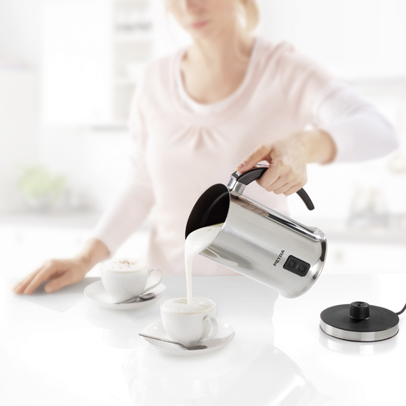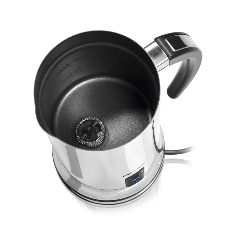 Aparat pentru spumarea laptelui, marca Petra, din inox, ideal pentru crearea unui lapte spumos si cald. Acesta transforma 250 ml de lapte rece in 500 ml spuma de lapte in doar cateva minute.