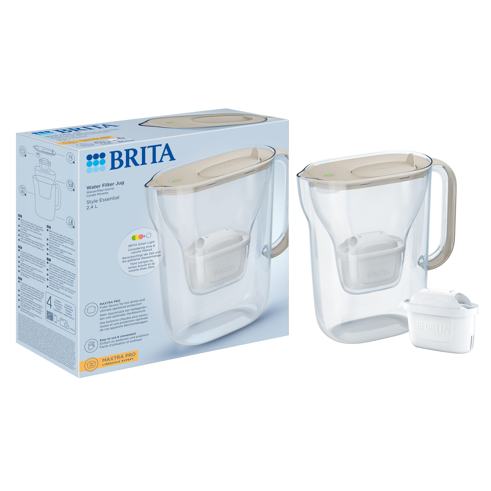 Cana filtranta Style Essential este prevazuta cu un sistem de avertizare pentru schimbarea cartusului tip LED, pozitionat pe capac. Acest sistem este unic in randul canilor BRITA, fiind prevazut doar la canile din gama Style. Intitulat "Smart Light", acest sistem monitorizeaza durata de viata ramasa a cartusului MAXTRA PRO si atentioneaza consumatorul prin schimbarea culorii de la verde la galben si apoi la rosu.