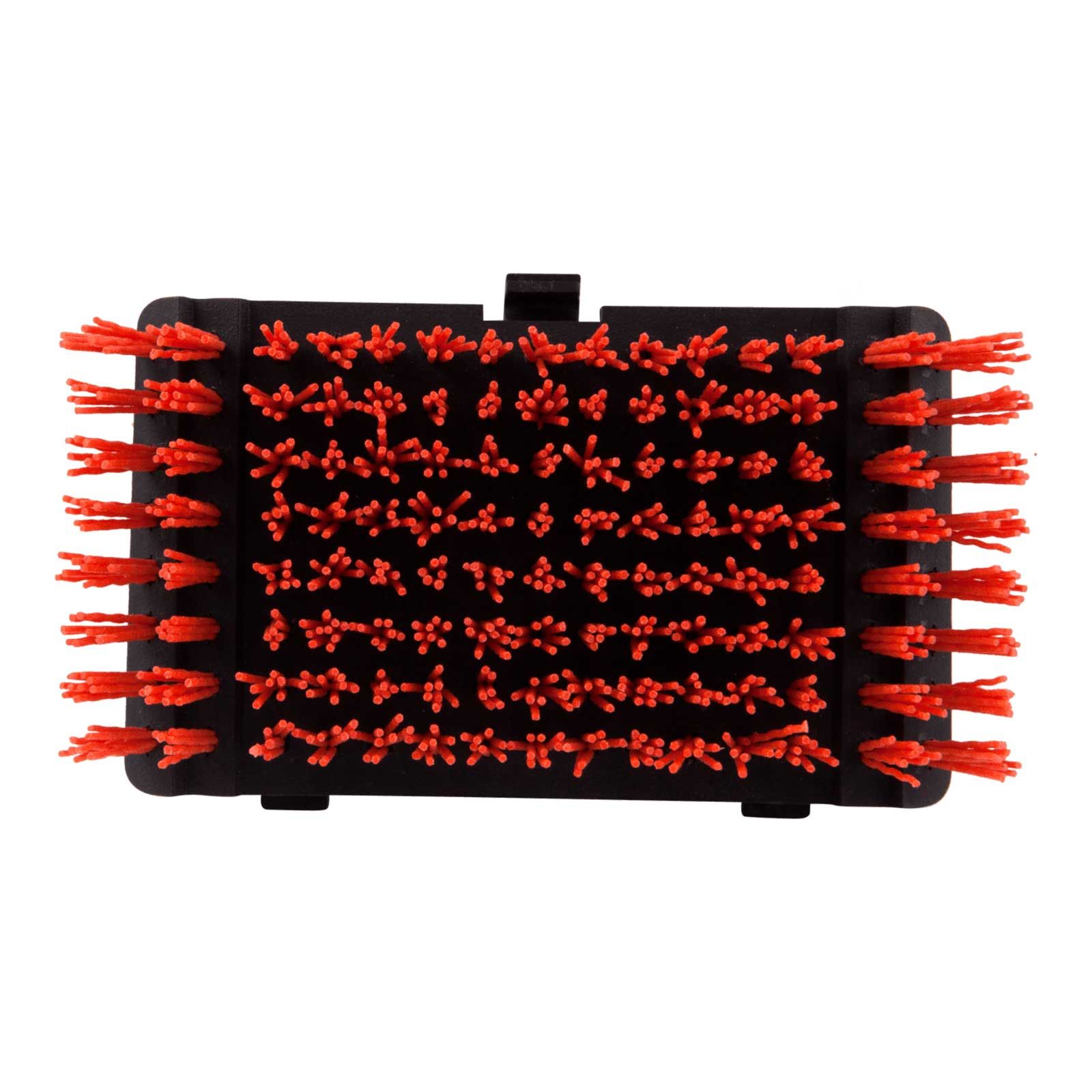 Capul de schimb din nylon pentru peria de gratar Premium transforma complet peria dvs. Cool-Clean, permitand o curatare completa a gratarului. Capul de schimb din nylon de la Char-Broil pentru peria de gratar Cool-Clean Premium va ofera o modalitate mai sigura de a va curata gratarul decat periile traditionale, care sunt formate din peri de sarma metalica. Aceasta perie inovatoare are peri de nylon de culoare rosie, infuzati cu ceramica, care au rezistat pana la 15.000 de utilizari in timpul testelor din fabrica fara a se rupe, a se toci sau a cadea.