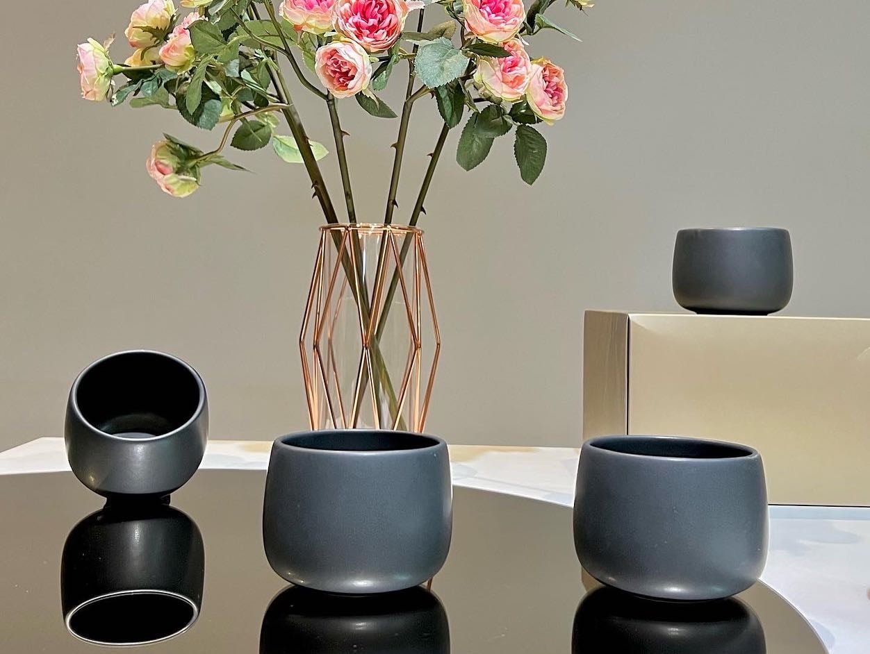 Nuanta intensa de negru carbon mat, imbogatita cu irizatii subtile de negru-maro-cenusiu, ofera un aspect modern si exclusivist, potrivit atat pentru mesele de zi cu zi, cat si pentru ocazii speciale. Peretii grosi contribuie la mentinerea temperaturii bauturii, oferind in acelasi timp o senzatie solida si placuta la utilizare.