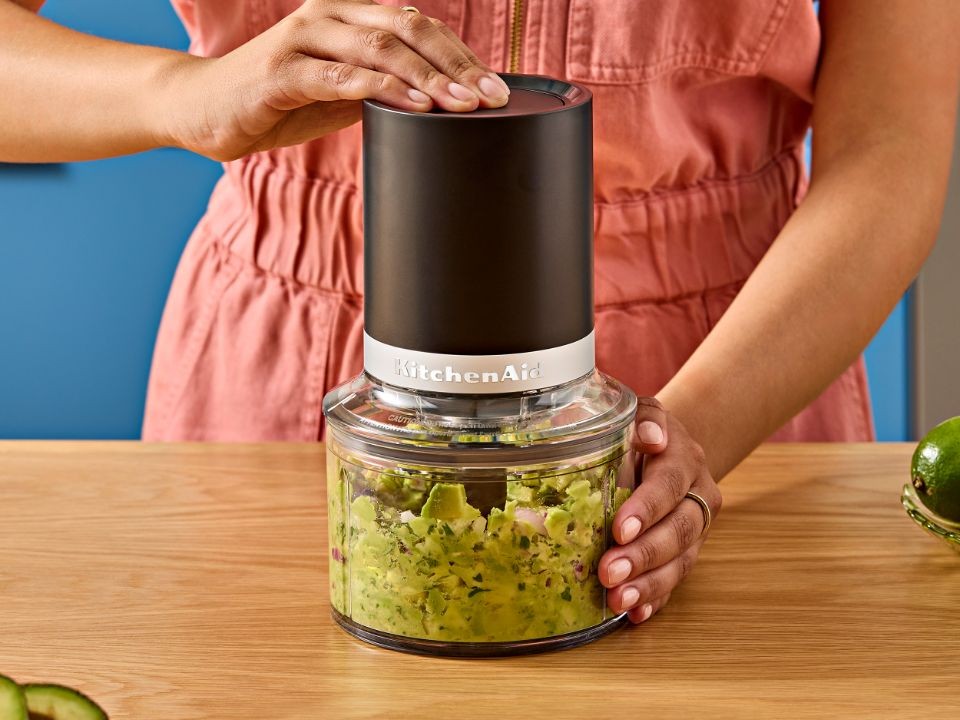 Chopper-ul fara fir, face parte din colectia KitchenAid Go Cordless. Bucurati-va de libertatea de a toca si mixa ingredientele cu ajutorul lamei multifunctionale incluse.