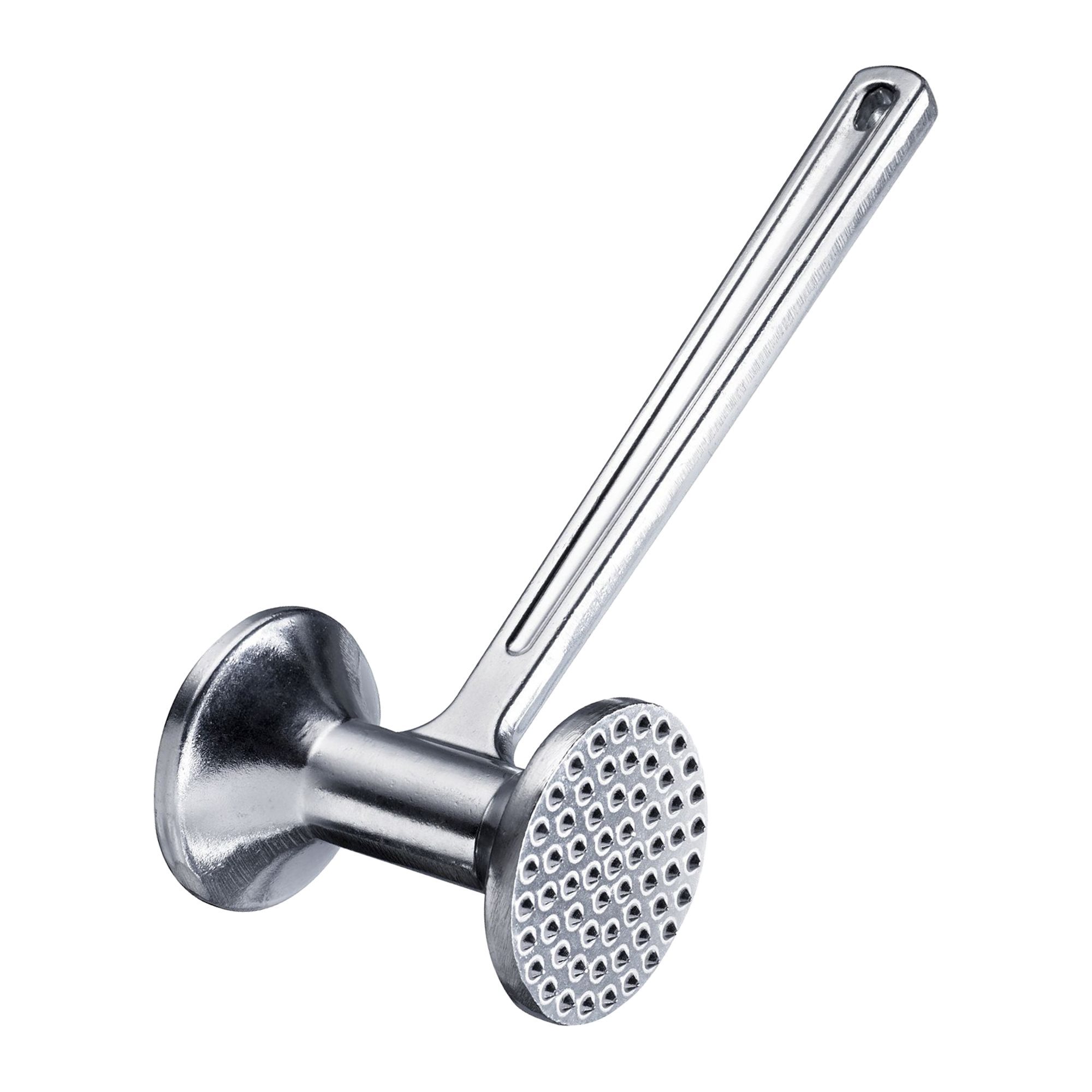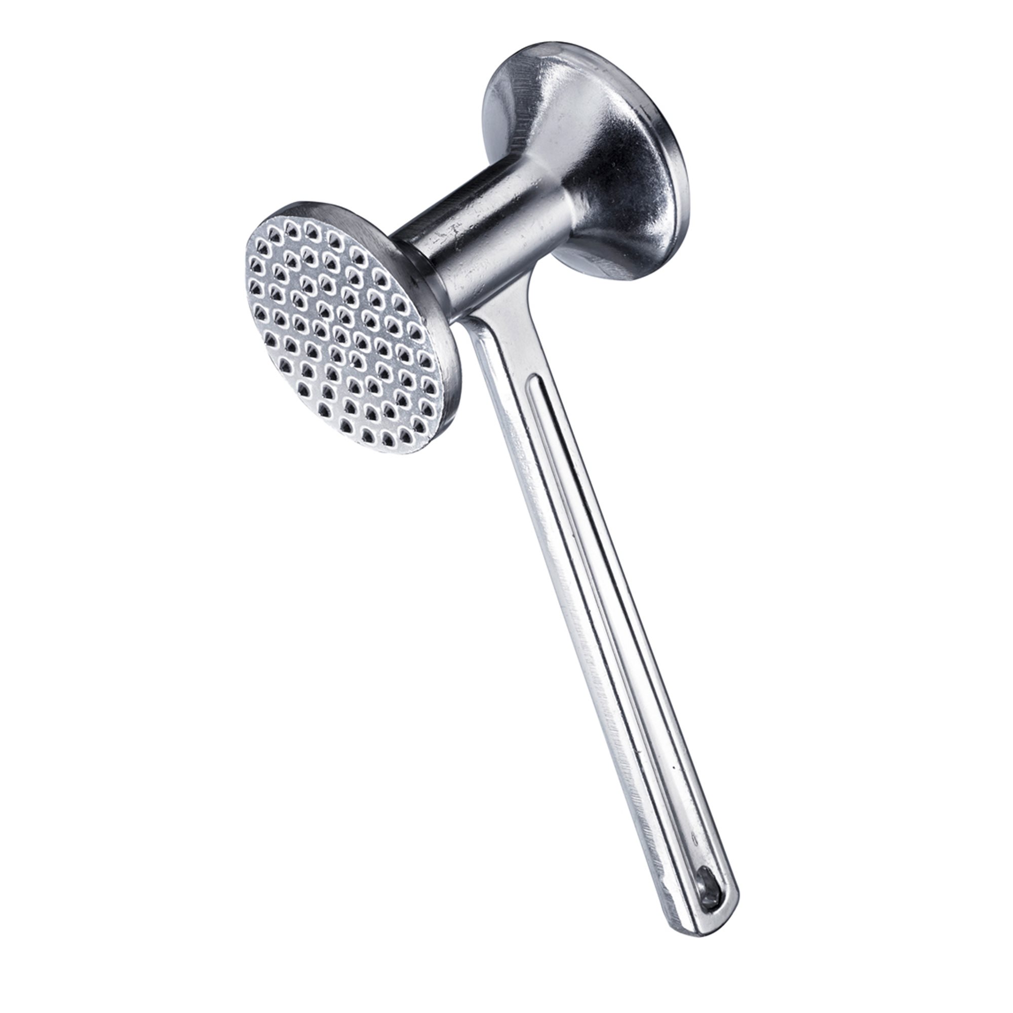 Este dotat cu 2 suprafete de preparare (diametru 75 mm): una cu structura fina pentru aplatizarea carnii fara afectarea fibrei si una plata.