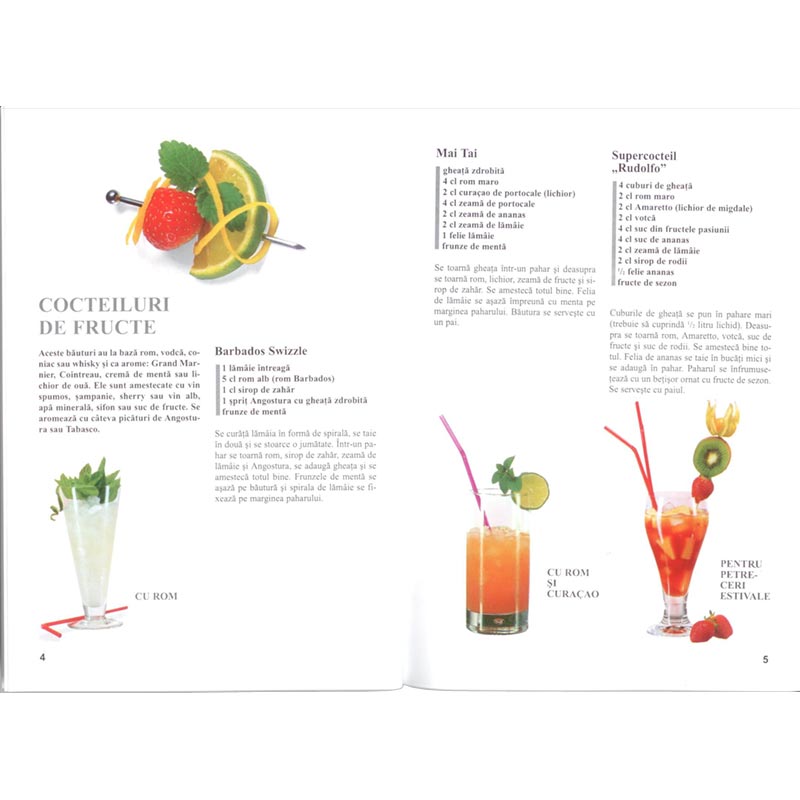 Prepararea cocteilurilor nu mai este un privilegiu pentru barmani, acestea se pot prepara si de noi insine, acasa. Aceasta carte va prezinta peste 130 de retete pentru cocteiluri din intreaga lume, plus indicatii cu privire la ornari pline de fantezie.