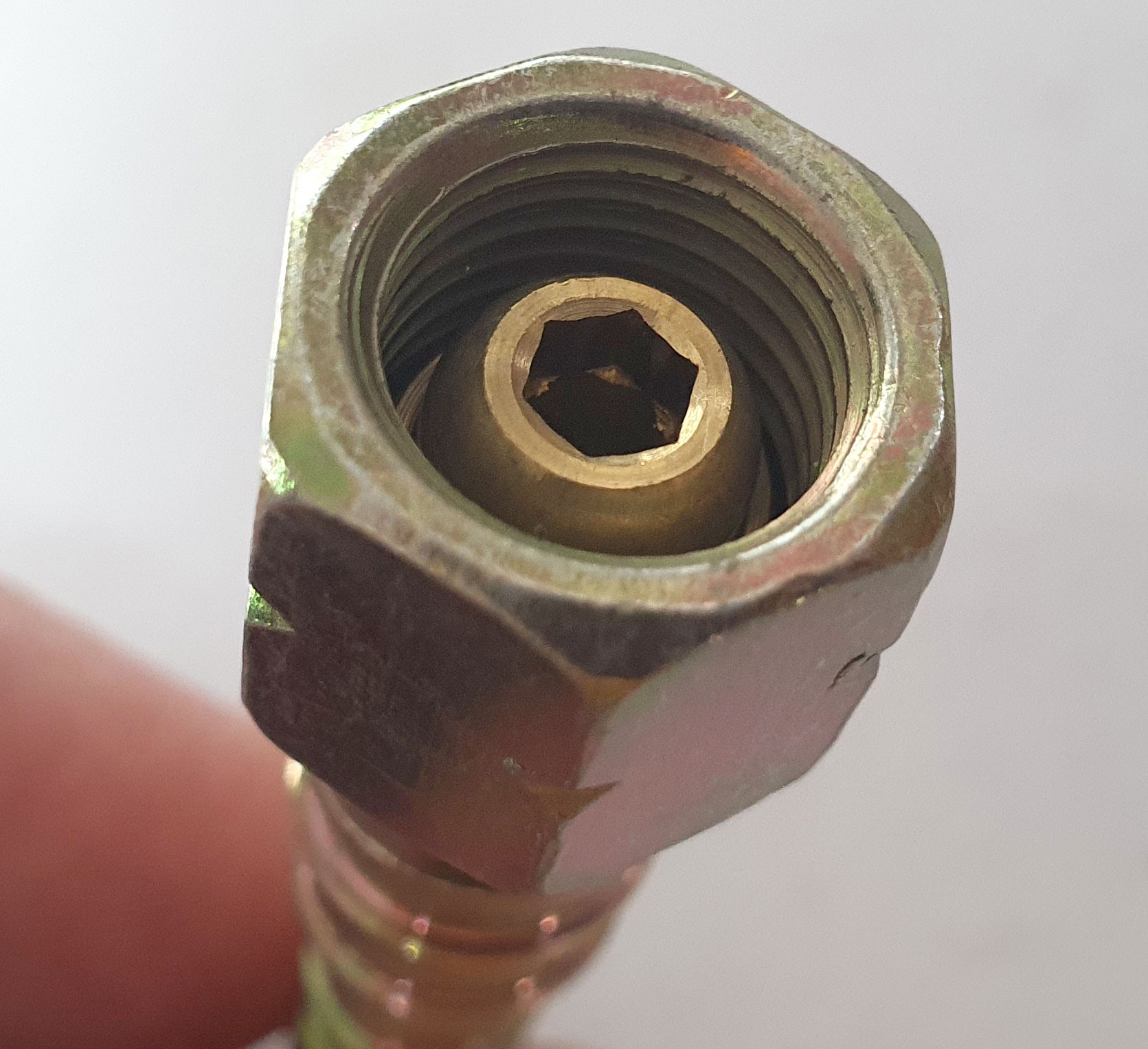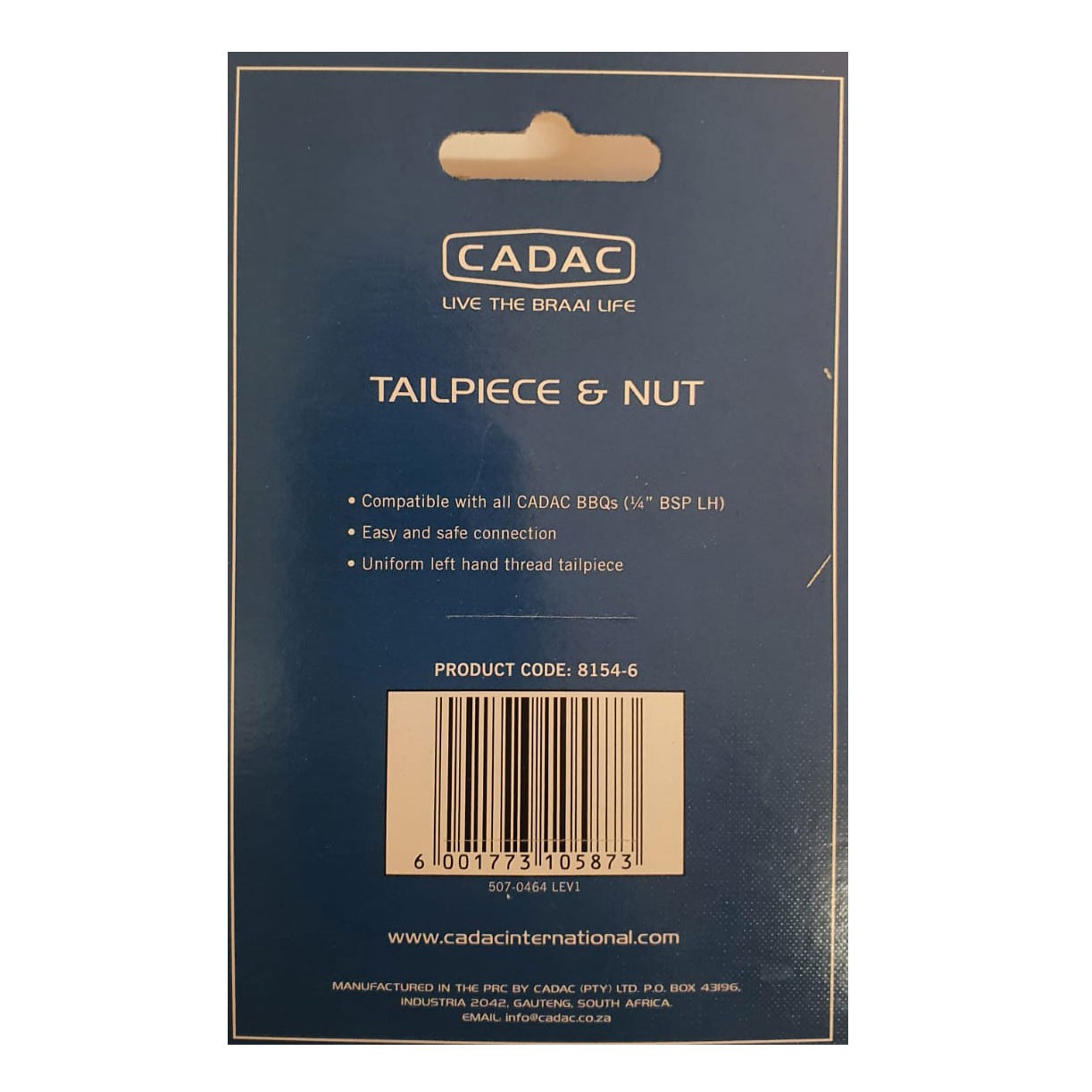 Piesa de conexiune intre furtunul de gaz si gratarul de gaz include stut si piulita cu filet standard de 1/4 BSP LH.