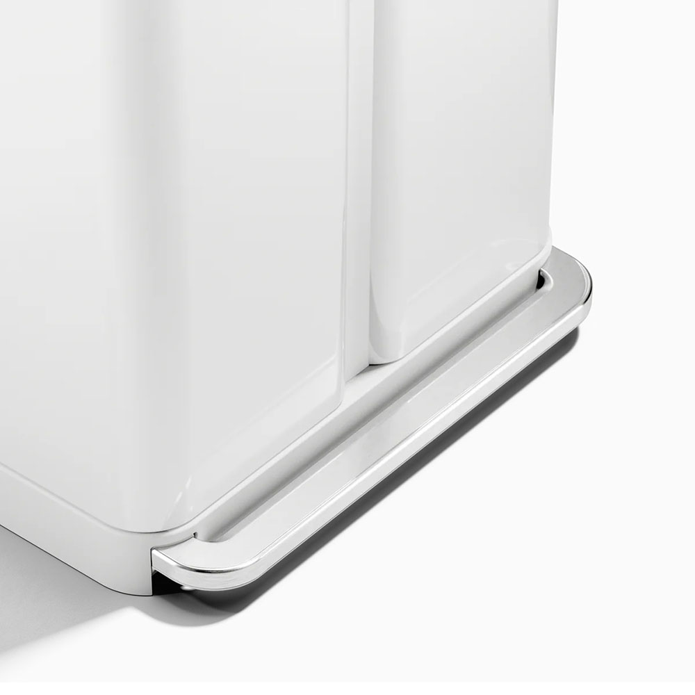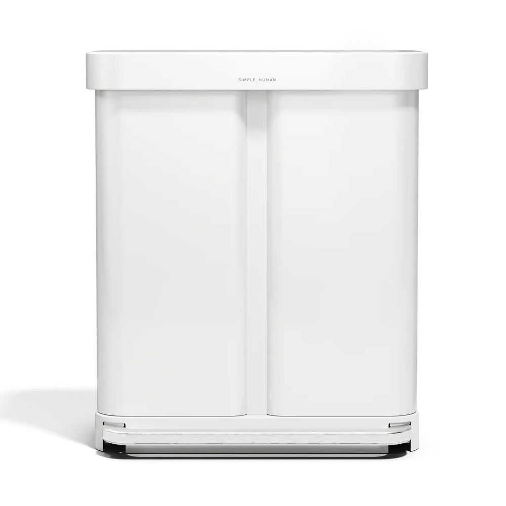 Cos de gunoi dublu compartimentat cu pedala, marca simplehuman, cu o capacitate de 58 L.