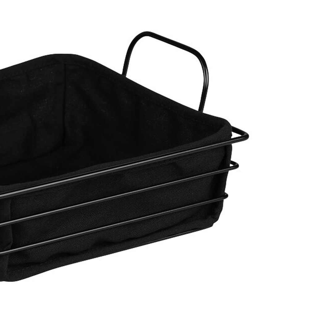 Fabricat din metal negru cu o protectie detasabila din material textil, care poate fi spalata la 30°C, permite o intretinere usoara. Dimensiunile de 25,5 × 22,5 cm si inaltimea de 11,5 cm ofera suficient spatiu pentru servirea produselor de patiserie, a fructelor si a altor alimente.