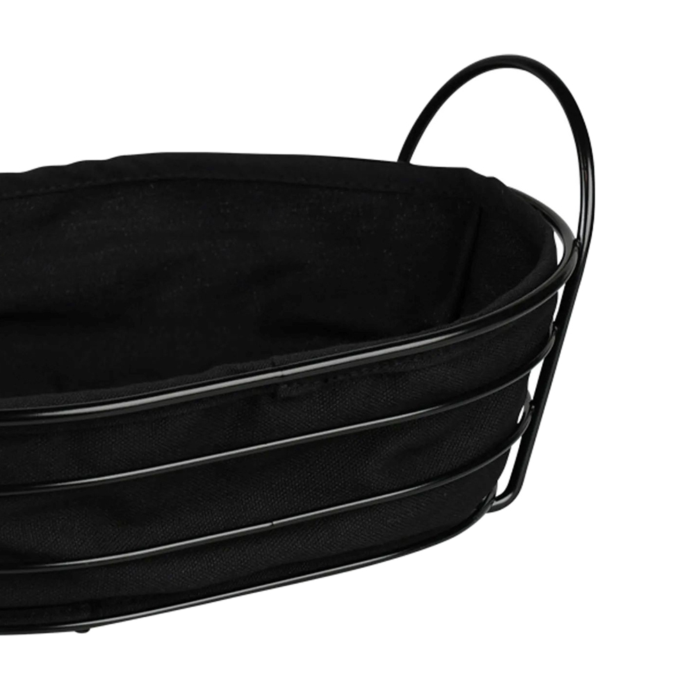 Fabricat din metal negru cu o protectie detasabila din material textil, care poate fi spalata la 30°C, permite o intretinere usoara. Dimensiunile de 28 × 20 cm si inaltimea de 11,5 cm ofera suficient spatiu pentru servirea produselor de patiserie, a fructelor si a altor alimente.