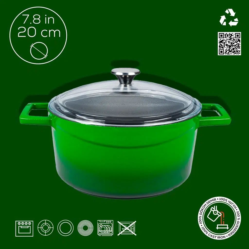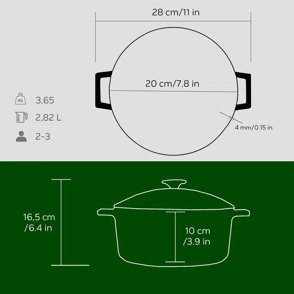 Cratita cu capac, marca Lava, diametru 20 cm, 2,82 l capacitate, fabricata din fonta si capac din sticla.