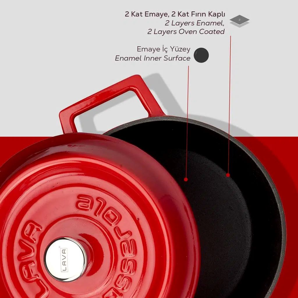 Emailul vitros, materialul folosit la finisarea exterioara a vaselor din fonta Lava, este obtinut prin pulverizarea la temperaturi de 750 - 850°C a prafului de sticla. Acesta adera la suprafata vasului creand un strat protector ce ajuta de asemenea la distribuirea optima a caldurii.