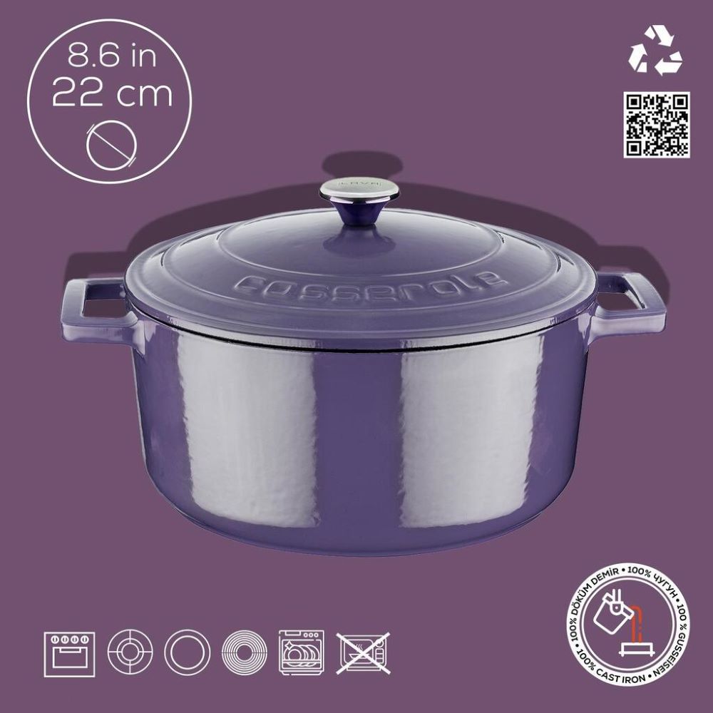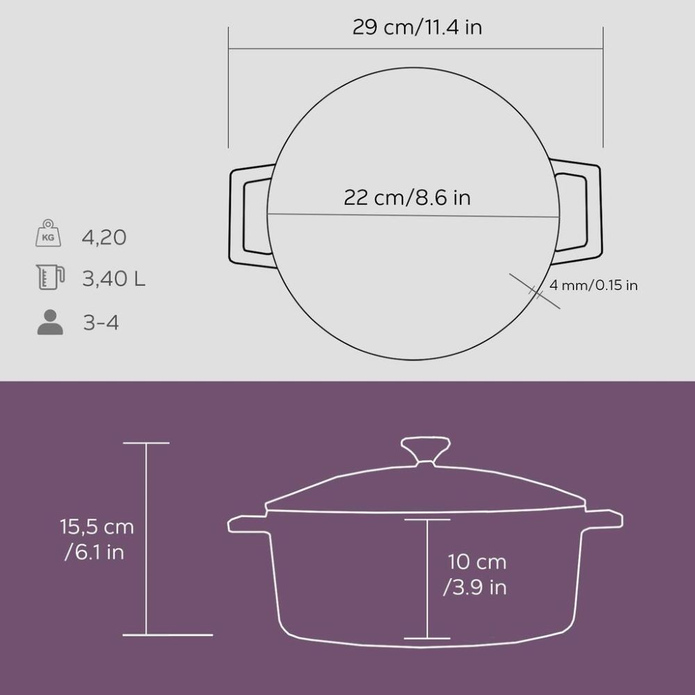 Cratita marca Lava, diametru 22 cm, 3,4 l capacitate, fabricata din fonta.