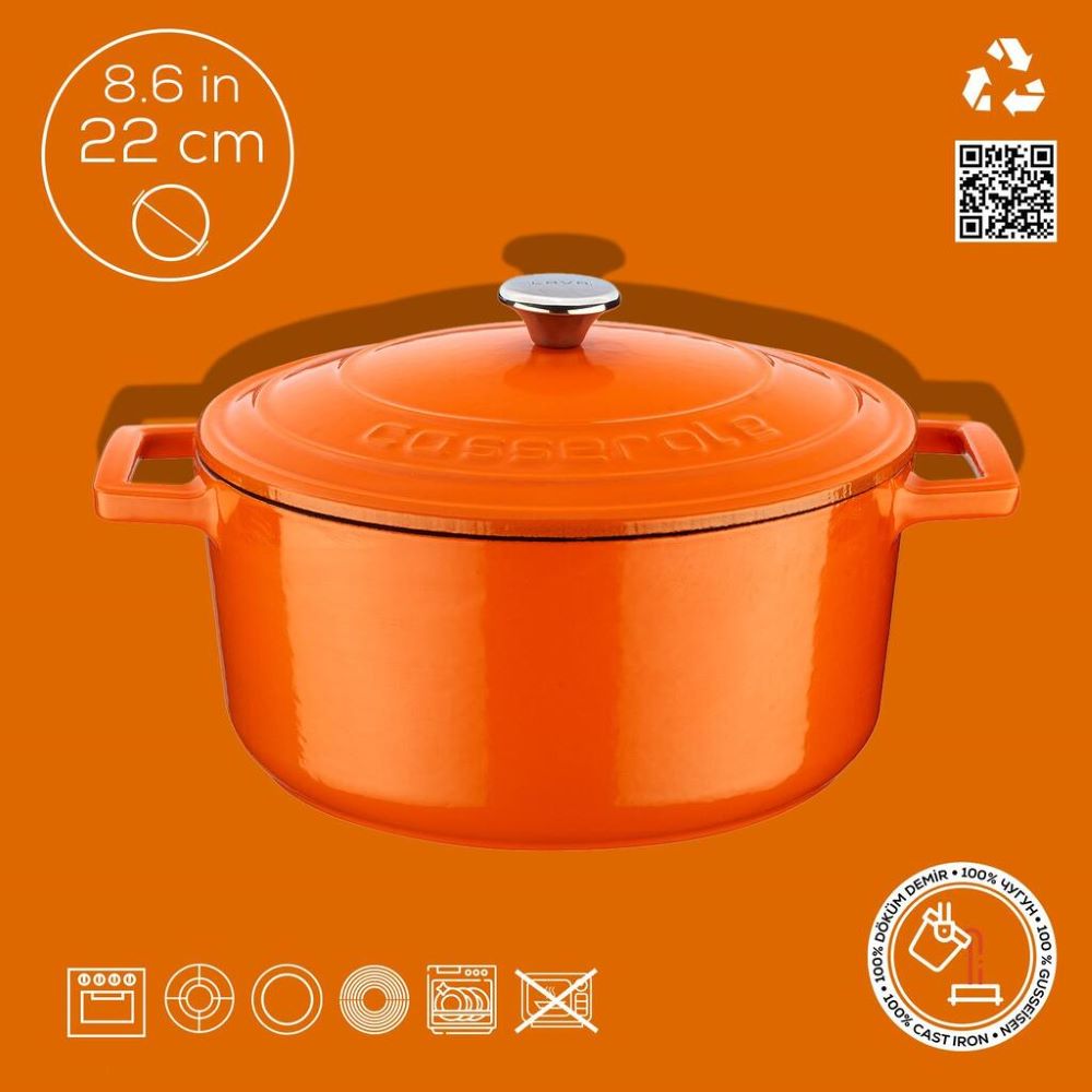 Cratita marca Lava, diametru 22 cm, 3,4 l capacitate, fabricata din fonta.