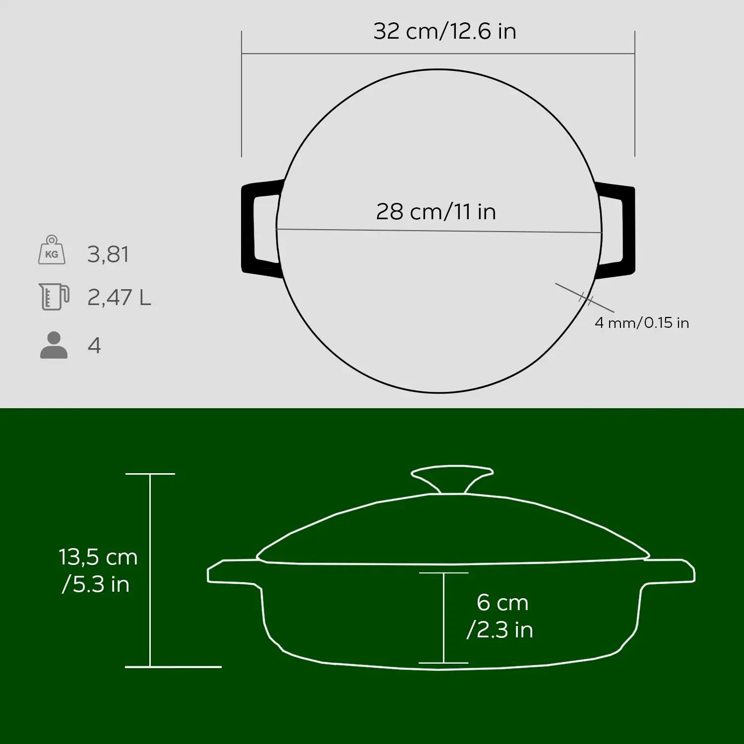 Cratita, marca Lava, diametru 24 cm, 2,47 l capacitate, fabricata din fonta.