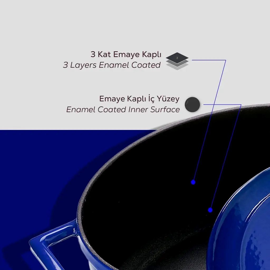 Peretii vasului au o grosime de 4 mm. In interior, vasul prezinta un strat de email negru ce faciliteaza crearea unei suprafete antiadezive atunci cand se gateste folosind grasimi.