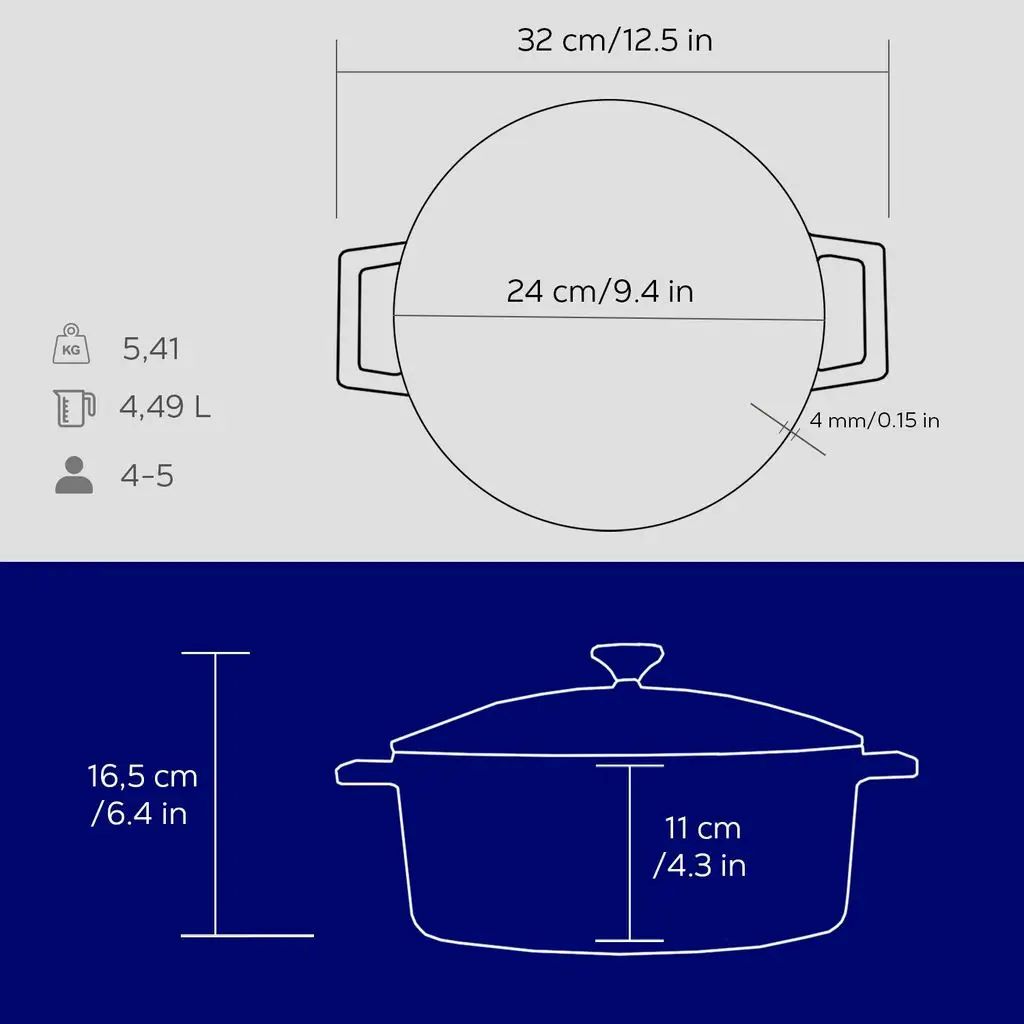 Cratita marca Lava, diametru 24 cm, 4,5 l capacitate, fabricata din fonta.