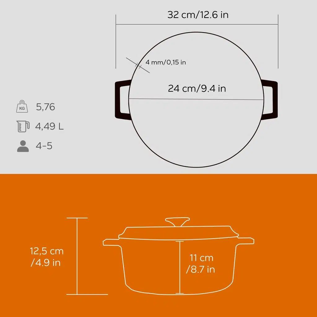 Cratita marca Lava, diametru 24 cm, 4,5 l capacitate, fabricata din fonta.