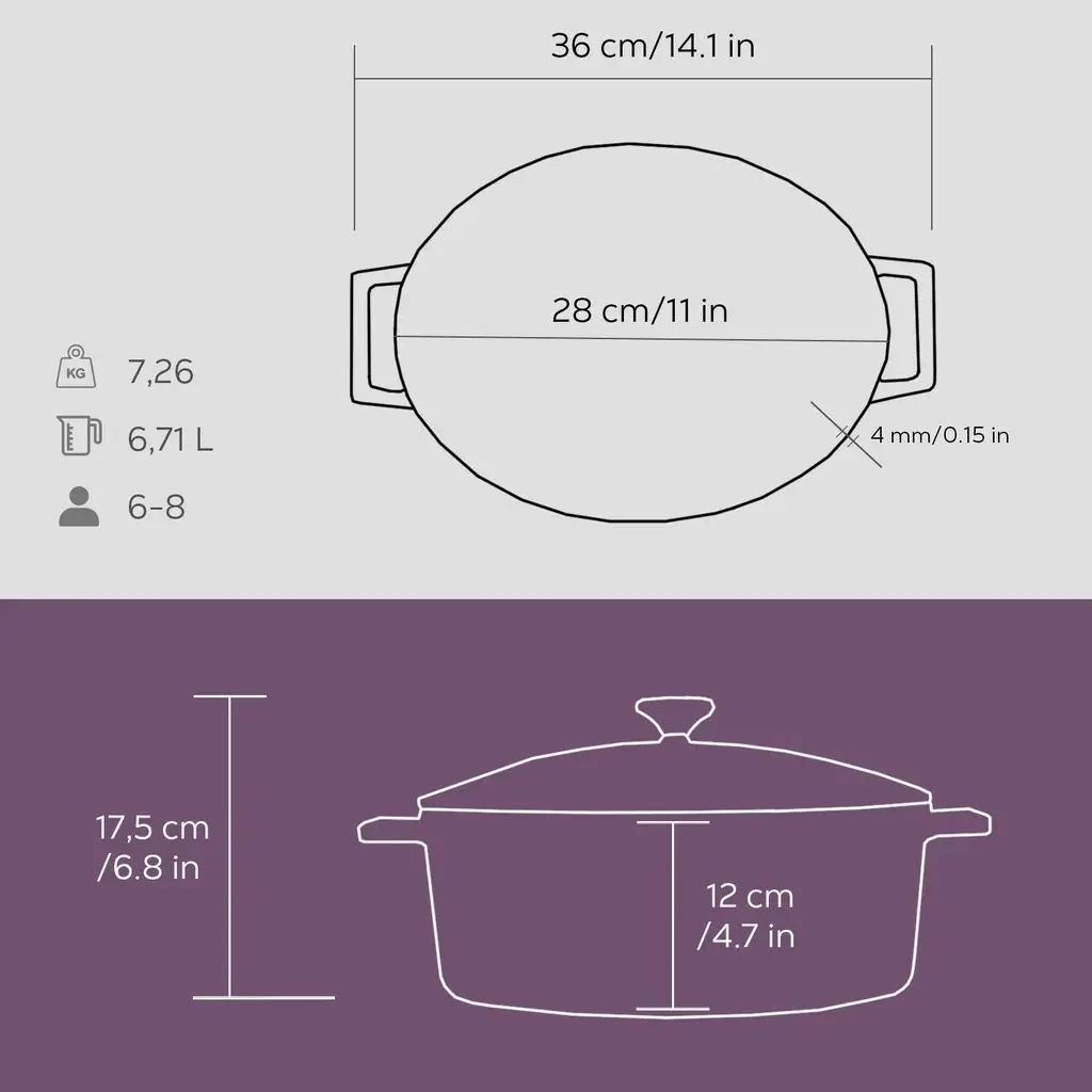 Cratita marca Lava, diametru 28 cm, 6,7 l capacitate, fabricata din fonta.