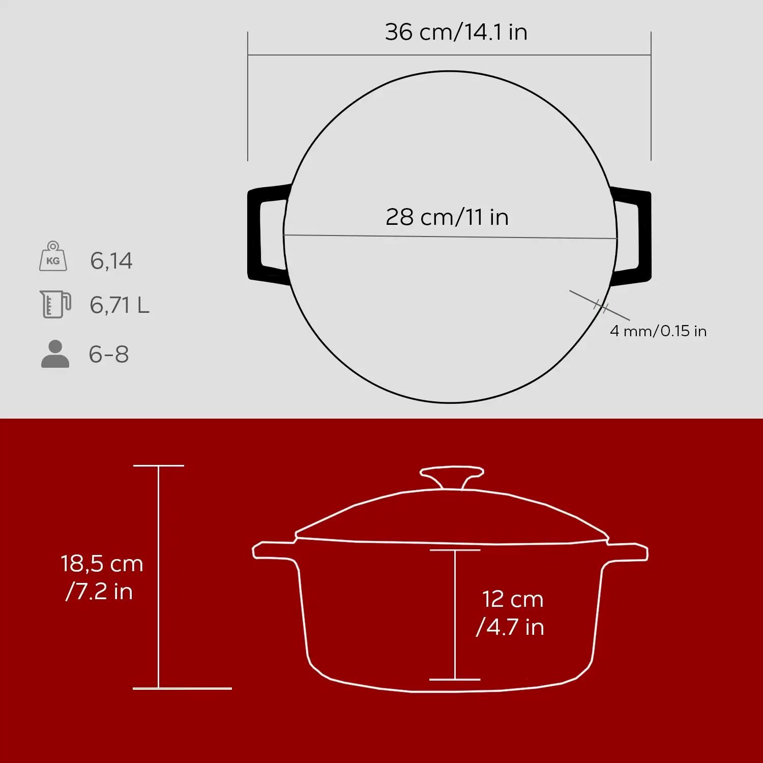 Fonta este un material care se incalzeste greu, dar odata incalzit retine foarte bine caldura un timp indelungat. Vasele, astfel, sunt potrivite pentru majoritatea tehnicilor de gatit, fie ca vorbim de prajire, gatitul la foc mic sau in cuptor.