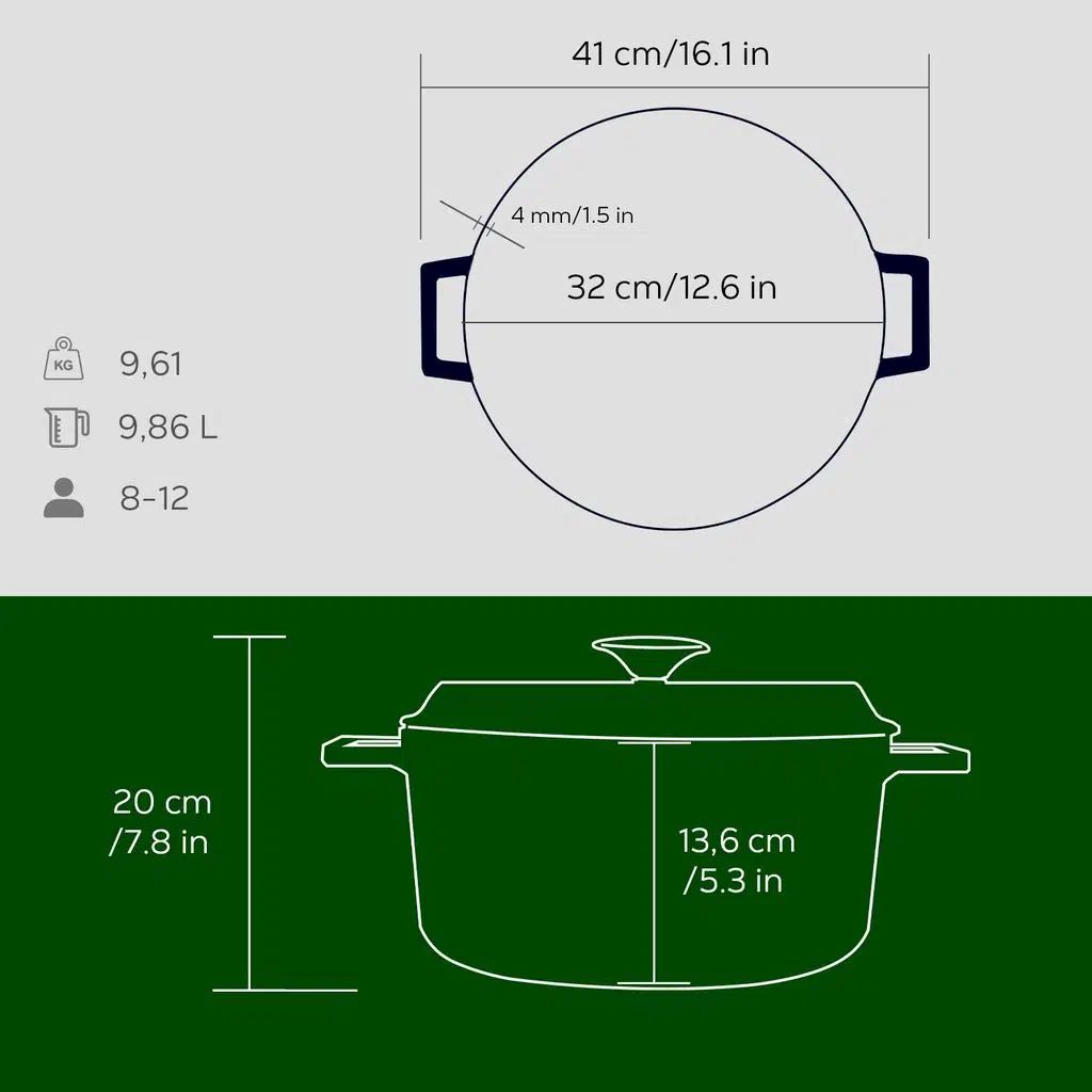 Cratita marca Lava, diametru 32 cm, capacitate 9,86 L, fabricata din fonta.