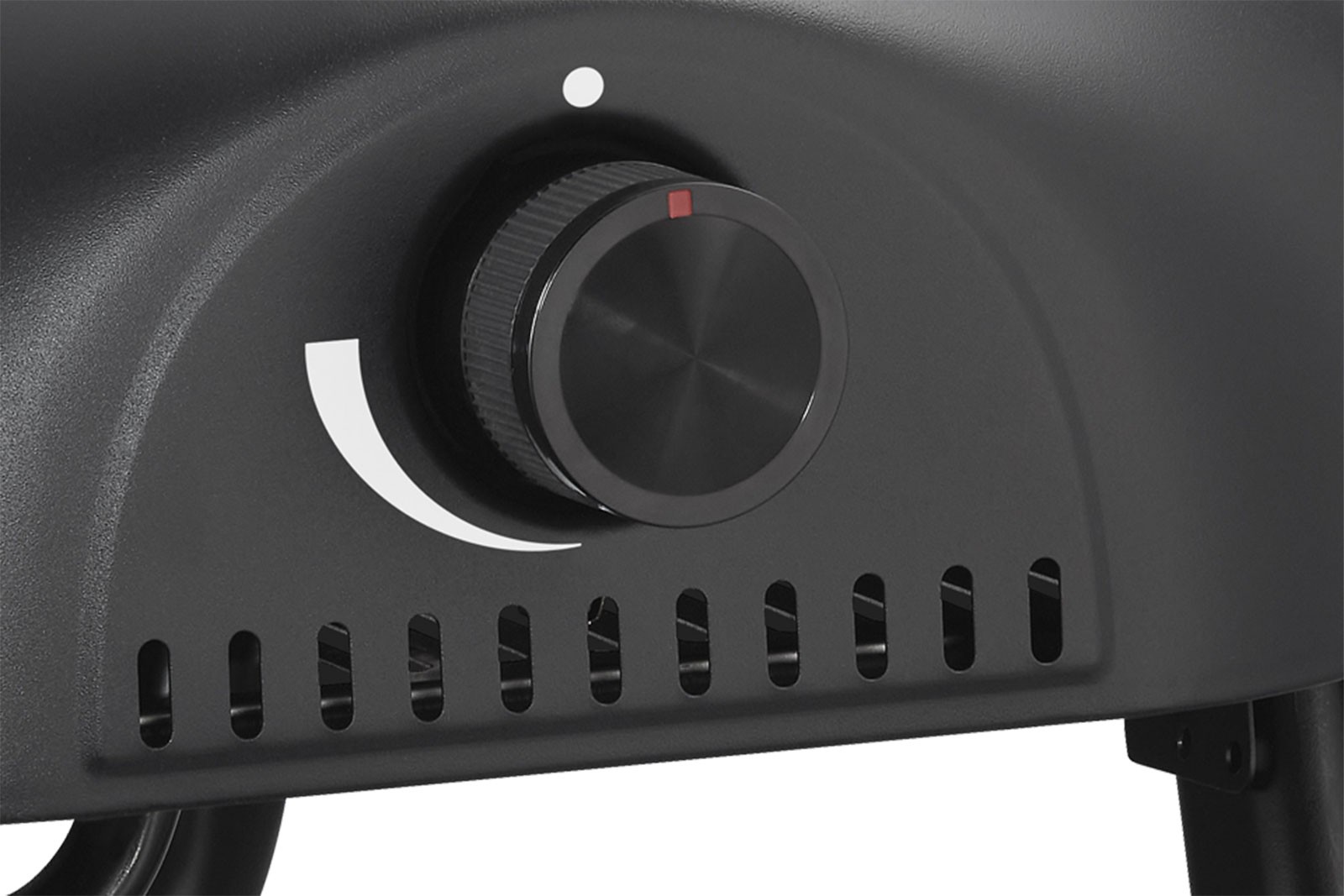 Puteti verifica temperatura pe termometrul integrat in lateral. Si, pentru orice eventualitate, exista un sistem de siguranta incorporat care intrerupe alimentarea cu gaz in cazul in care se stinge flacara. O alta caracteristica practica: picioarele pliabile faciliteaza transportul.