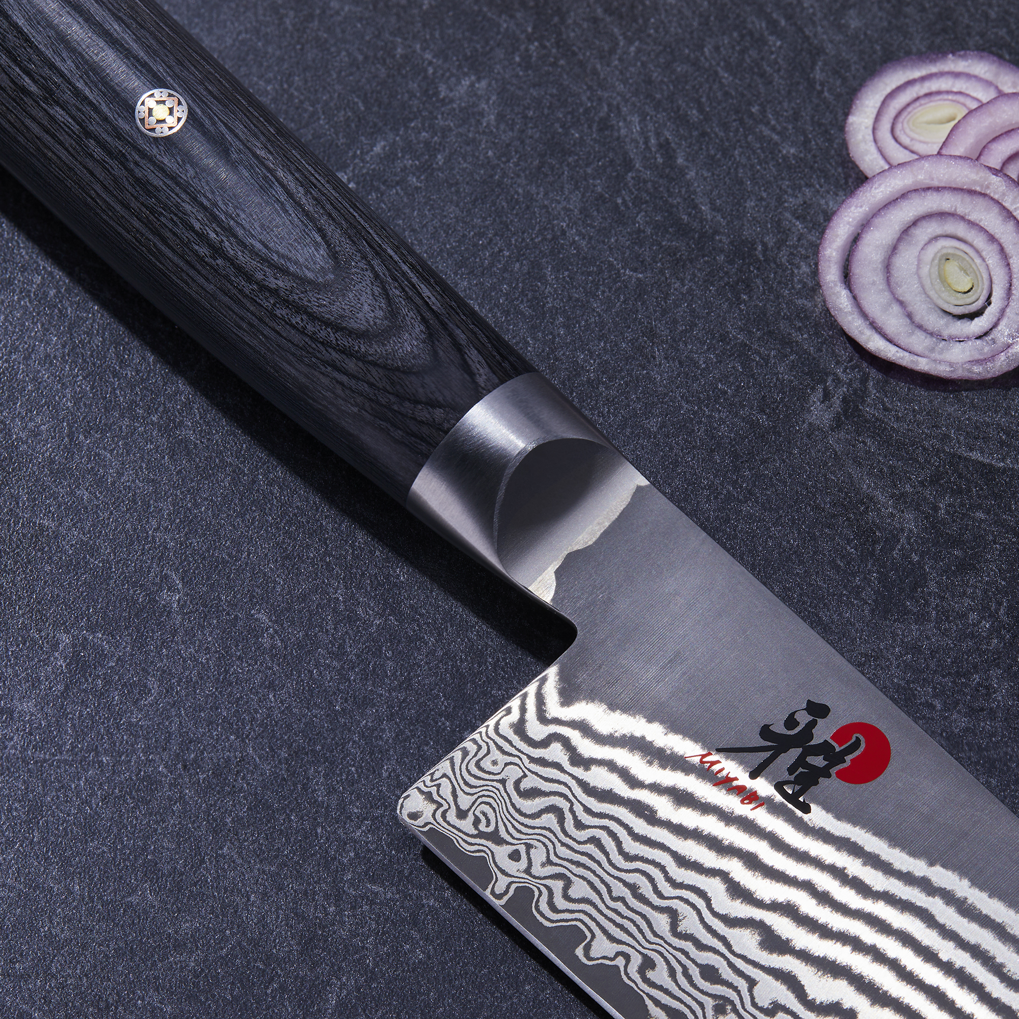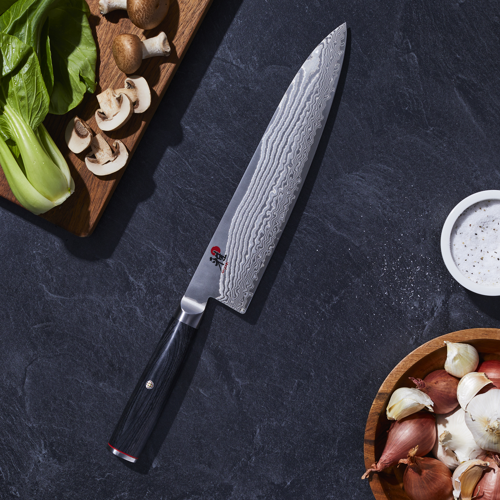 Cutit Gyutoh, cutitul bucatarului japonez, marca Miyabi, cu lama de 24 cm rezistenta la socuri.