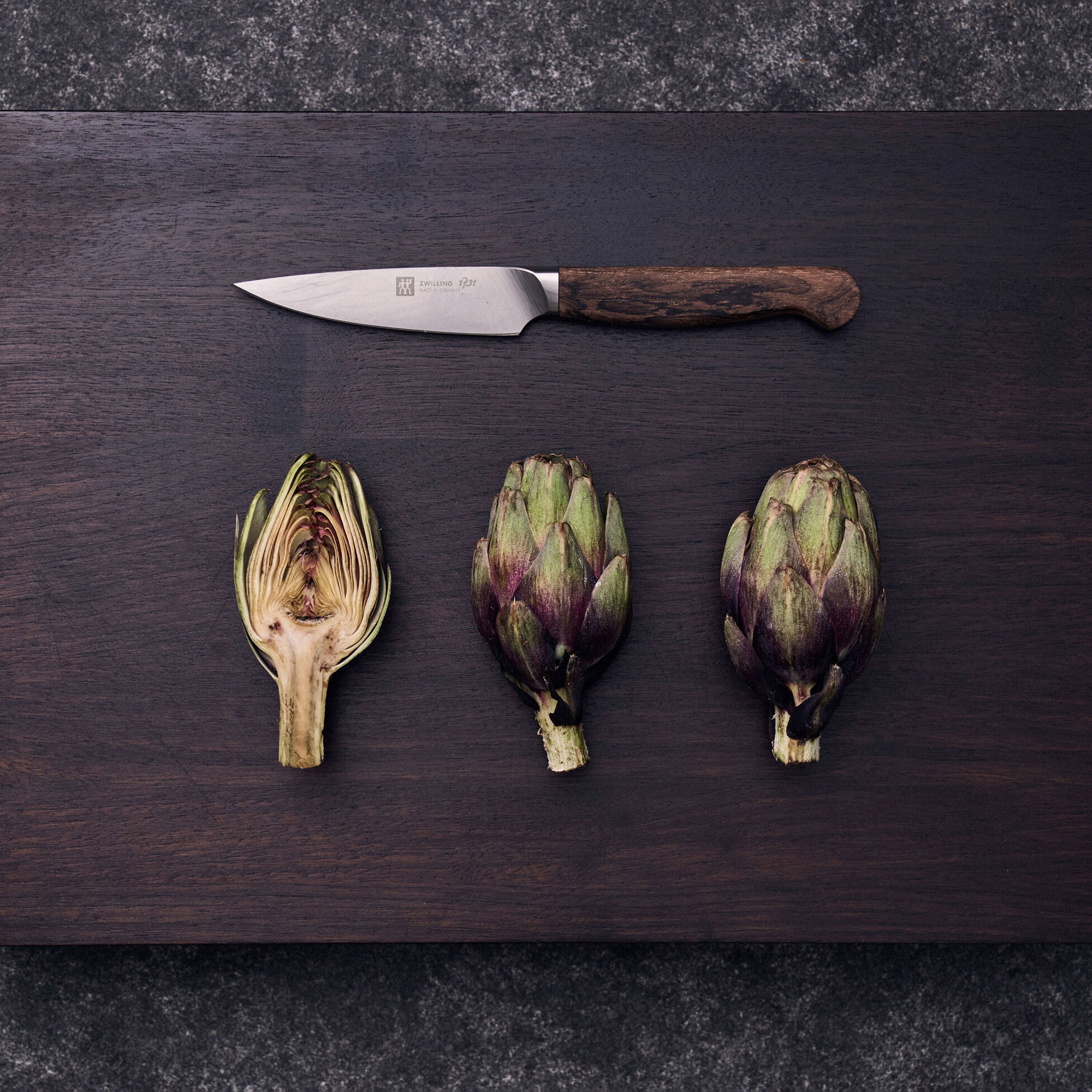Cutit pentru decojit "TWIN 1731", marca Zwilling, cu lama de 10 cm lungime si maner din lemn pretios de ziricot.
