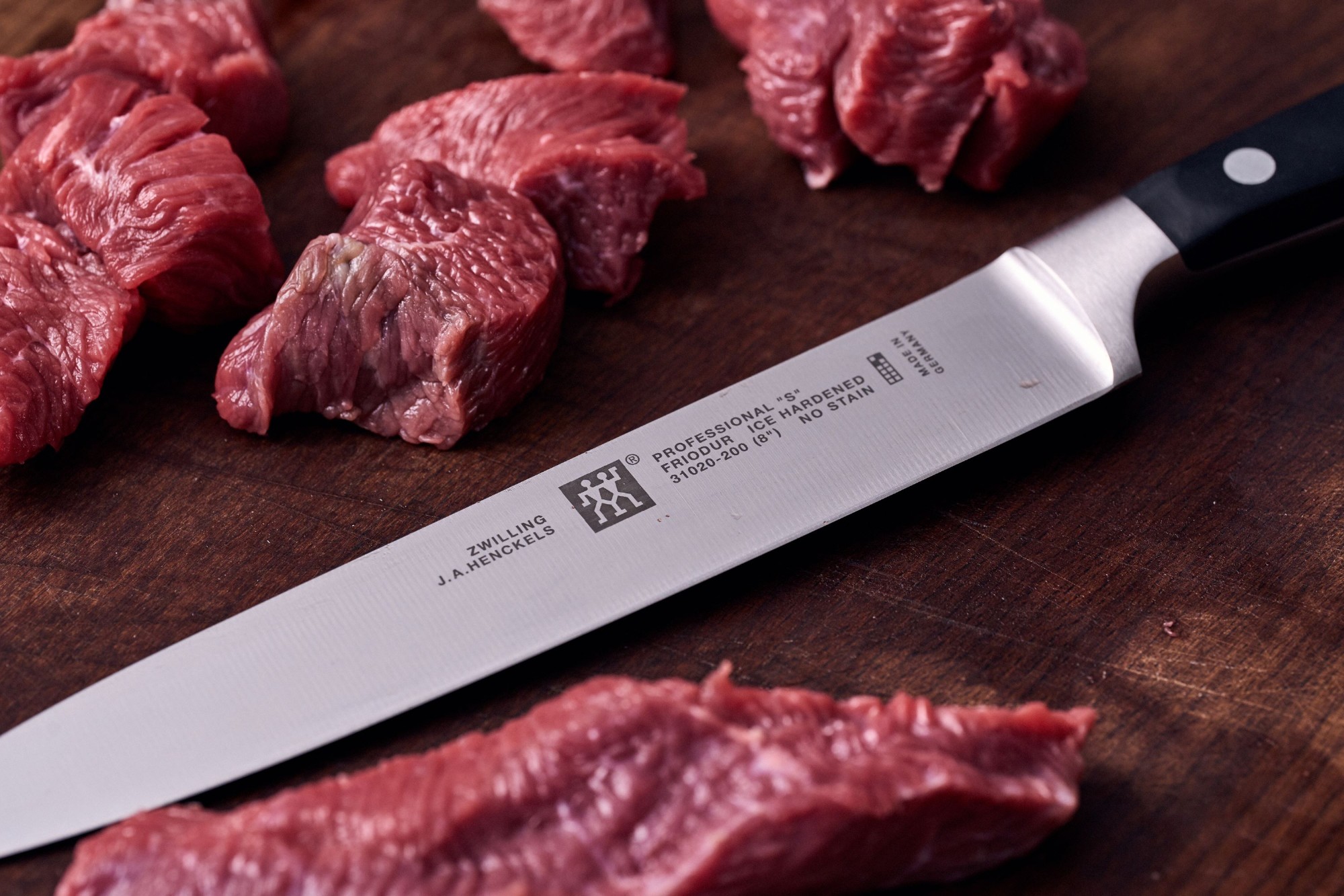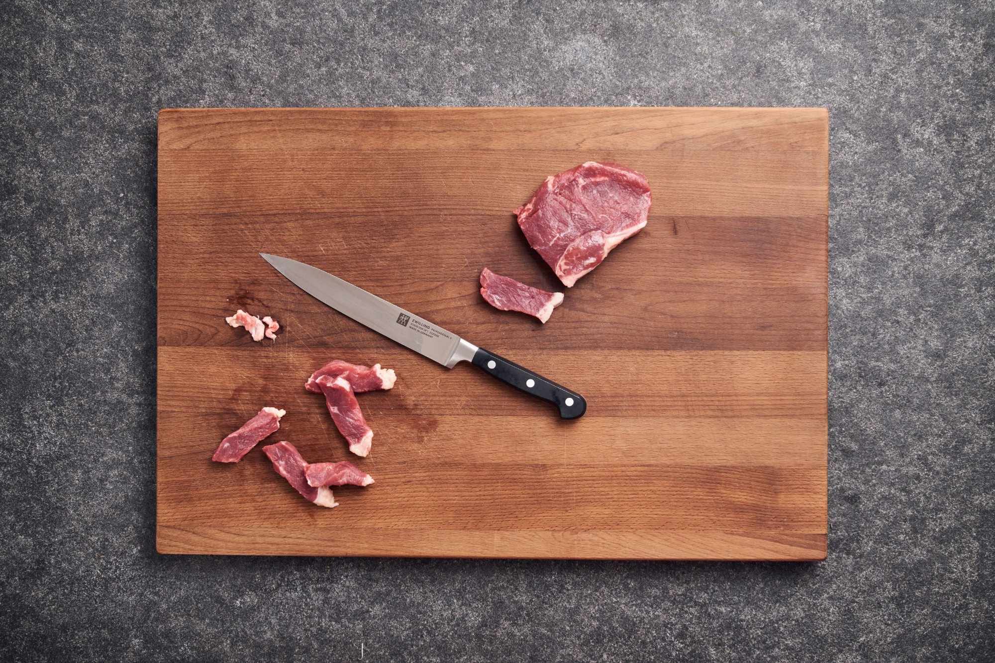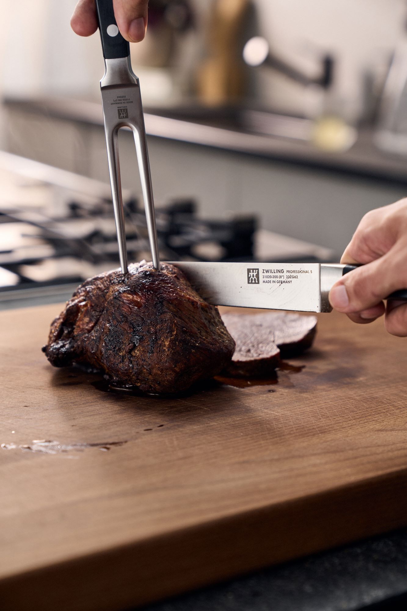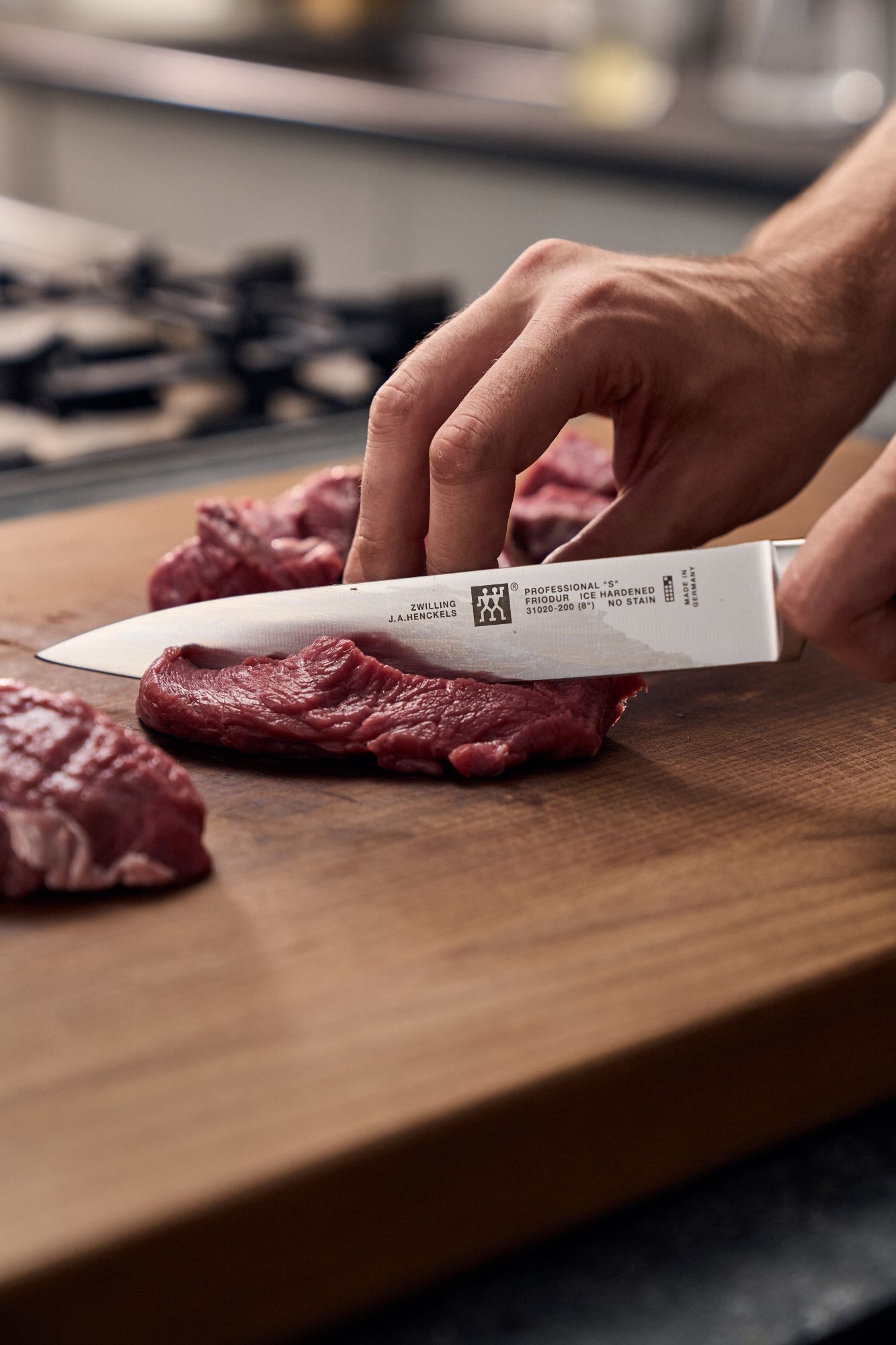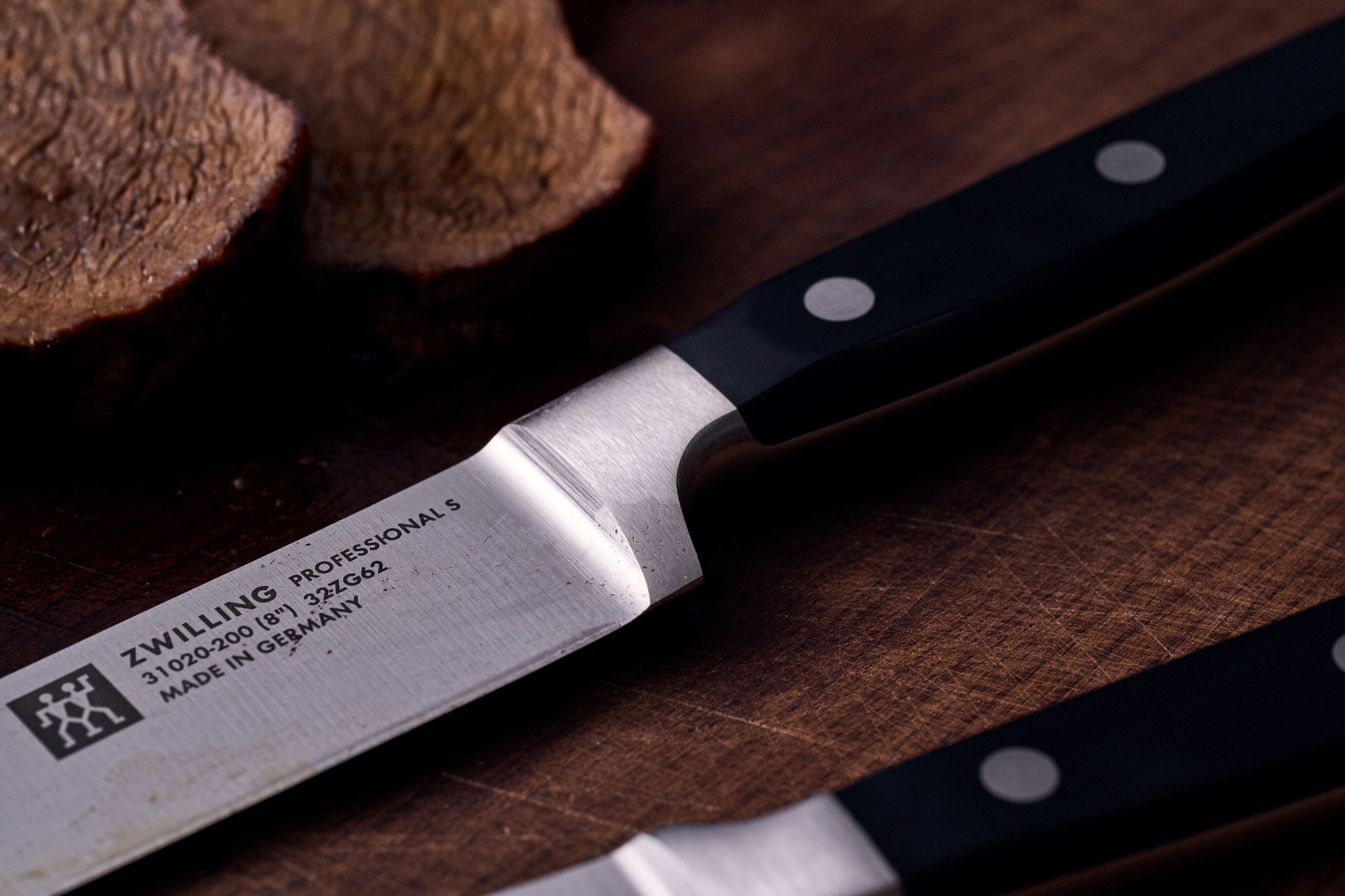 Cutit pentru feliat, marca Zwilling, cu lama de 20 cm, din otel inoxidabil.