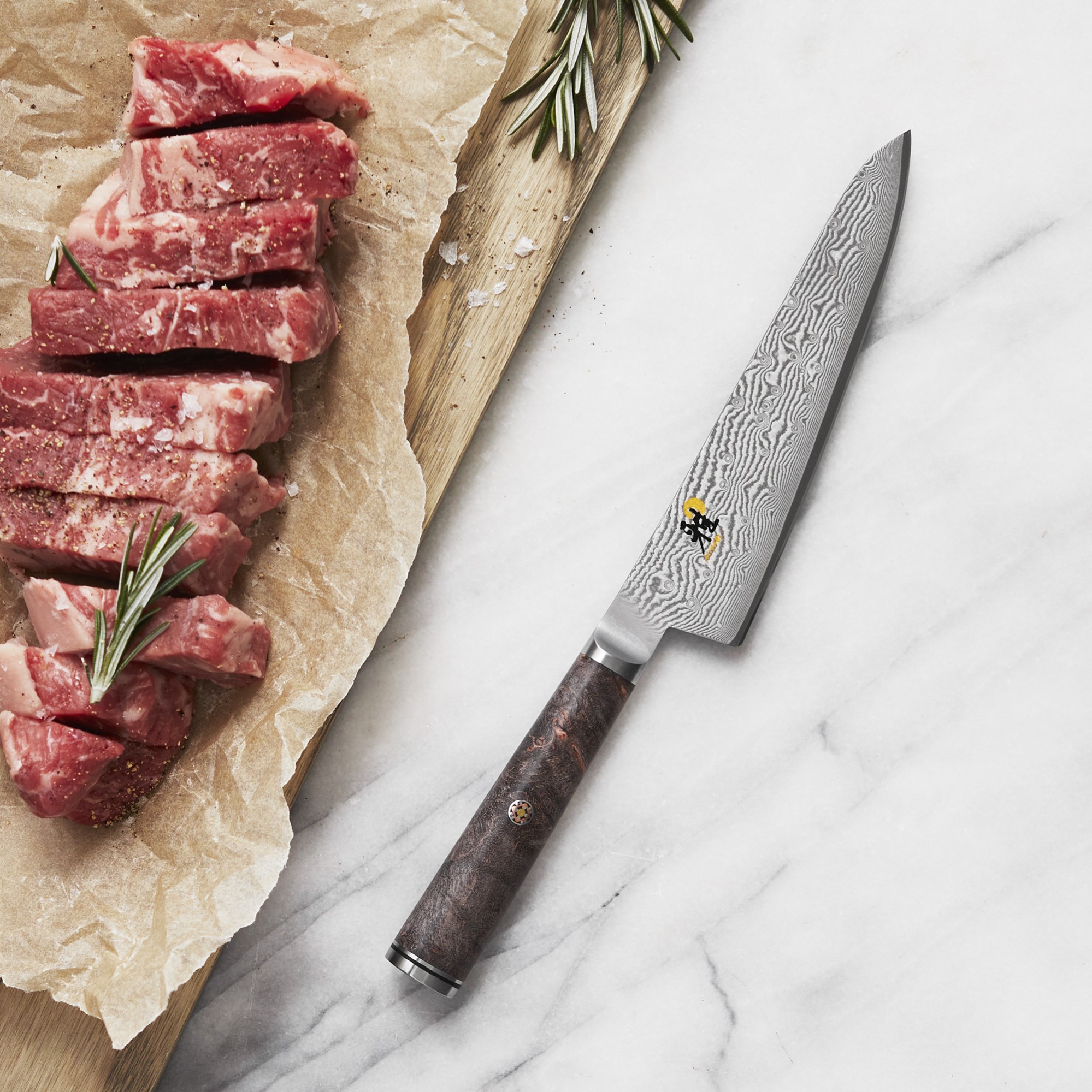 - Lama simetrica Honbazuke cu margini ultra-ascutite asigura maximul de precizie in taiere;