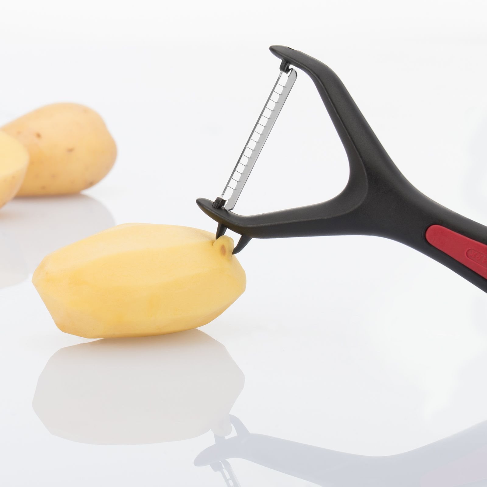 Decojitor legume julienne, marca Westmark, cu lama din inox si maner confortabil din plastic, ideal pentru legume, avand 2 lame (una serata si una dreapta care permite taierea de fasii lungi).