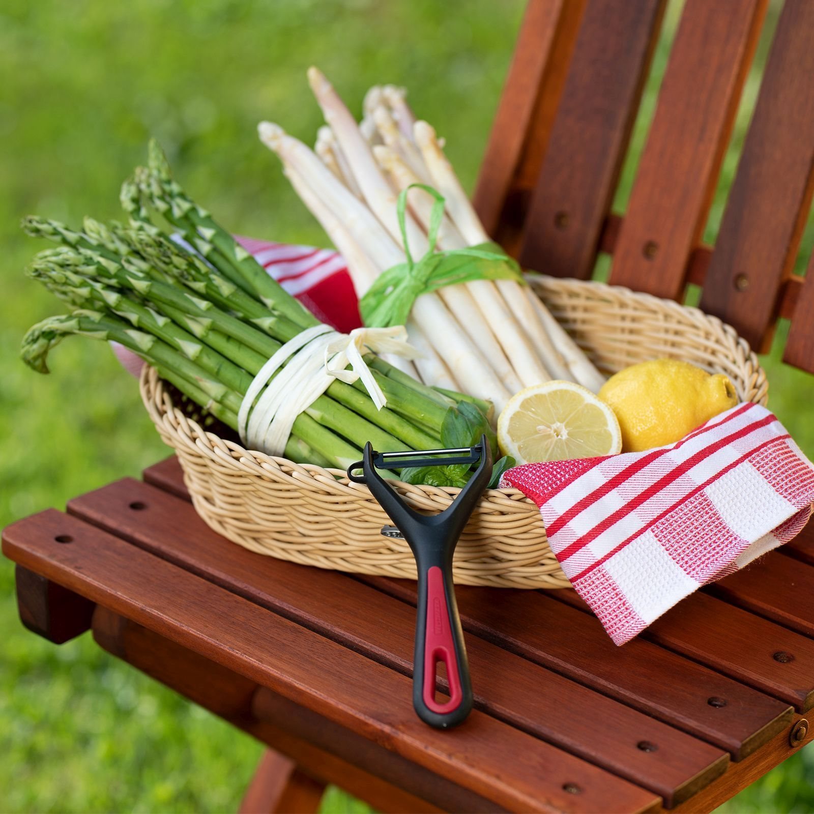 Decojitor pentru legume si sparanghel, marca Westmark, din plastic, cu lama din inox.