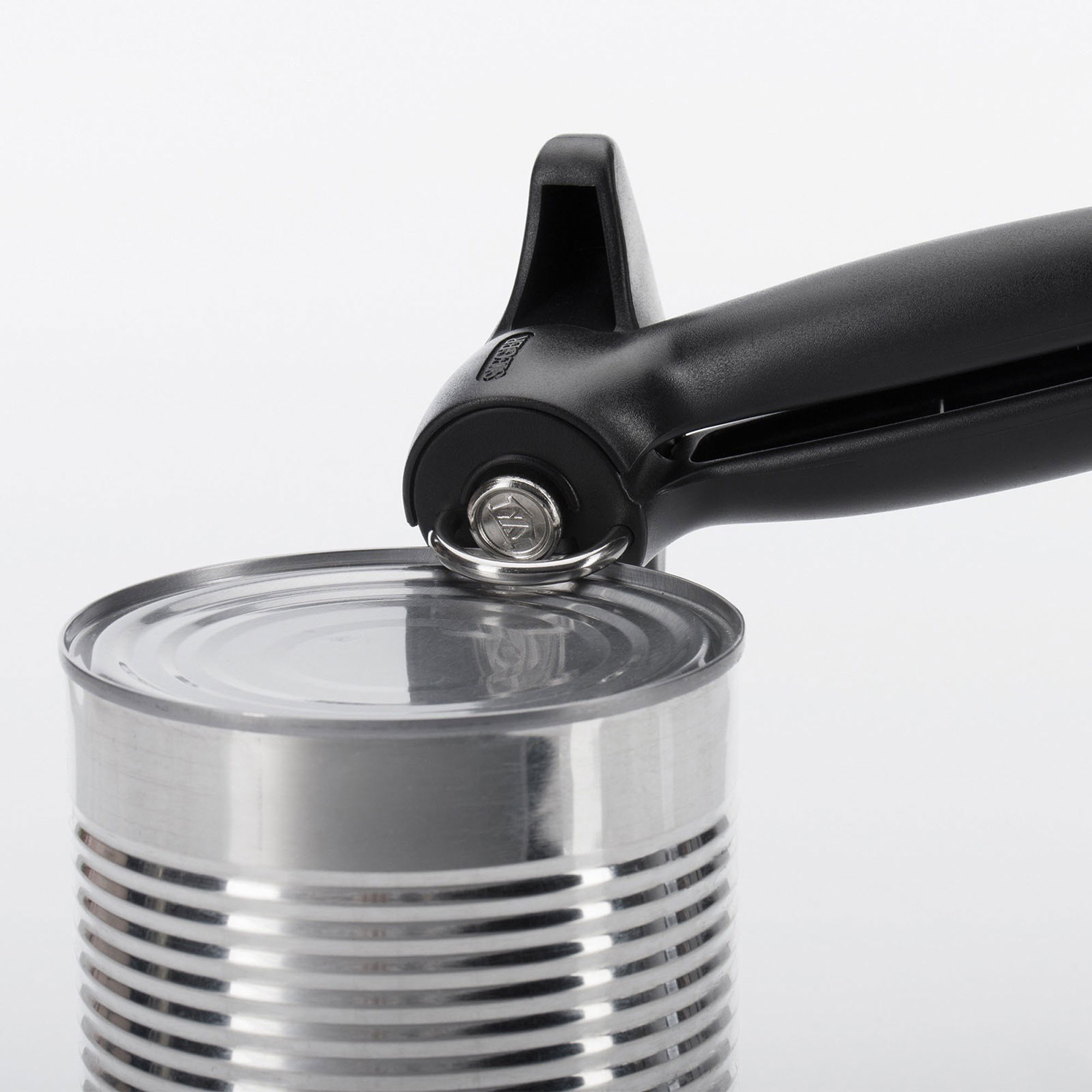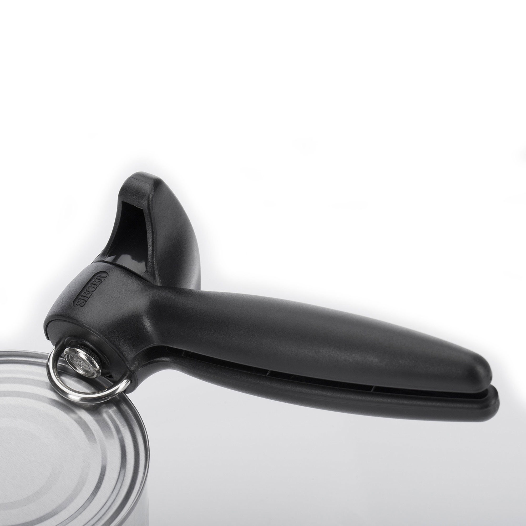 Cu deschizatorul de conserve "Sieger-Bravo" puteti deschide cutiile de alimente fara efor si fara risc de ranire! Pentru a face acest lucru, asezati deschizatorul orizontal pe marginea cutiei, apasati manerele simultan si rotiti butonul astfel incat discul de taiere sa se miste de-a lungul cutiei, deschizand capacul fara margini ascutite. Capacul poate fi pus pur si simplu inapoi pentru a acoperi conserva.