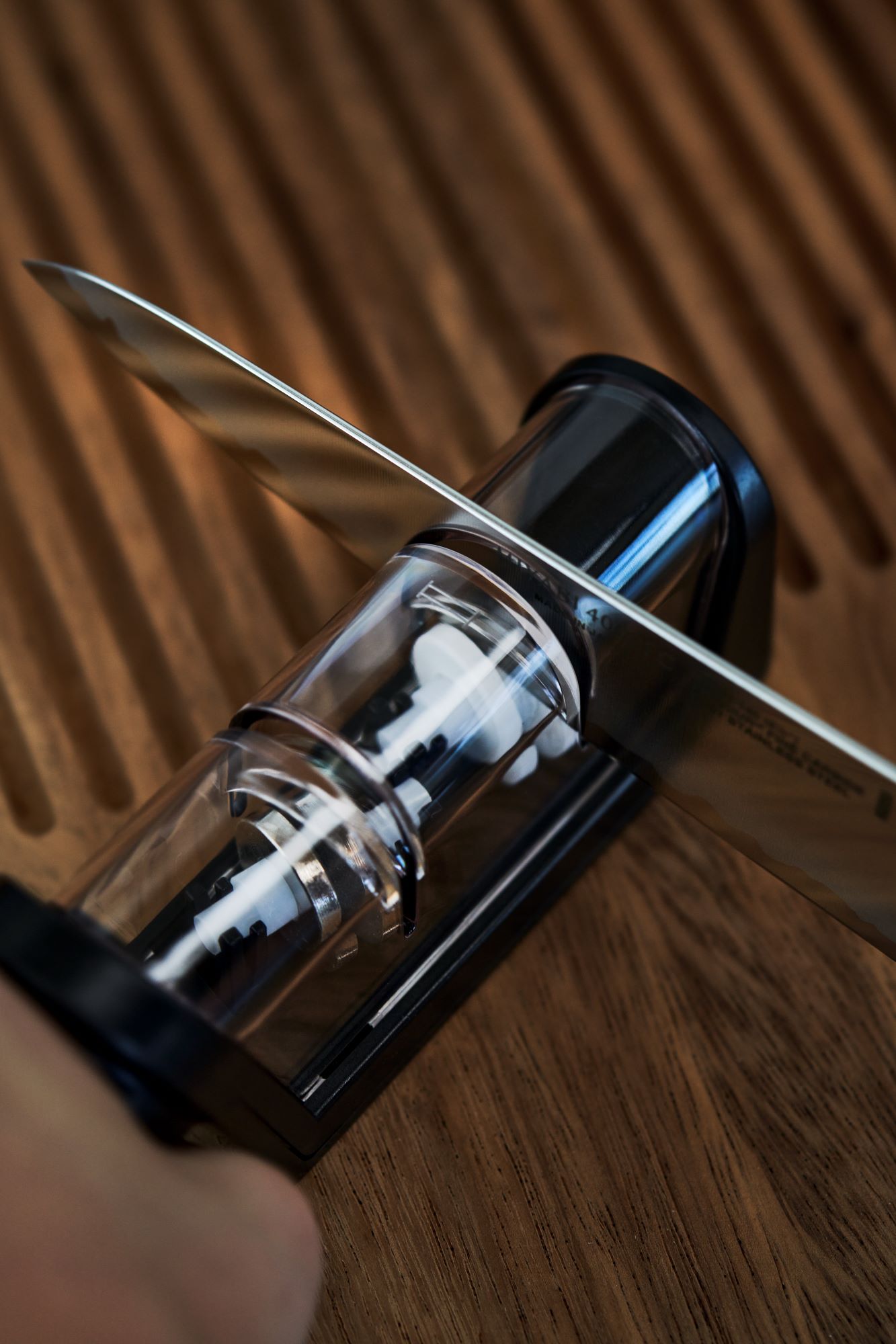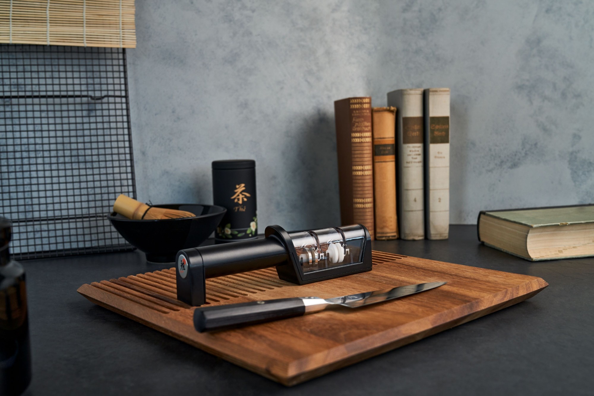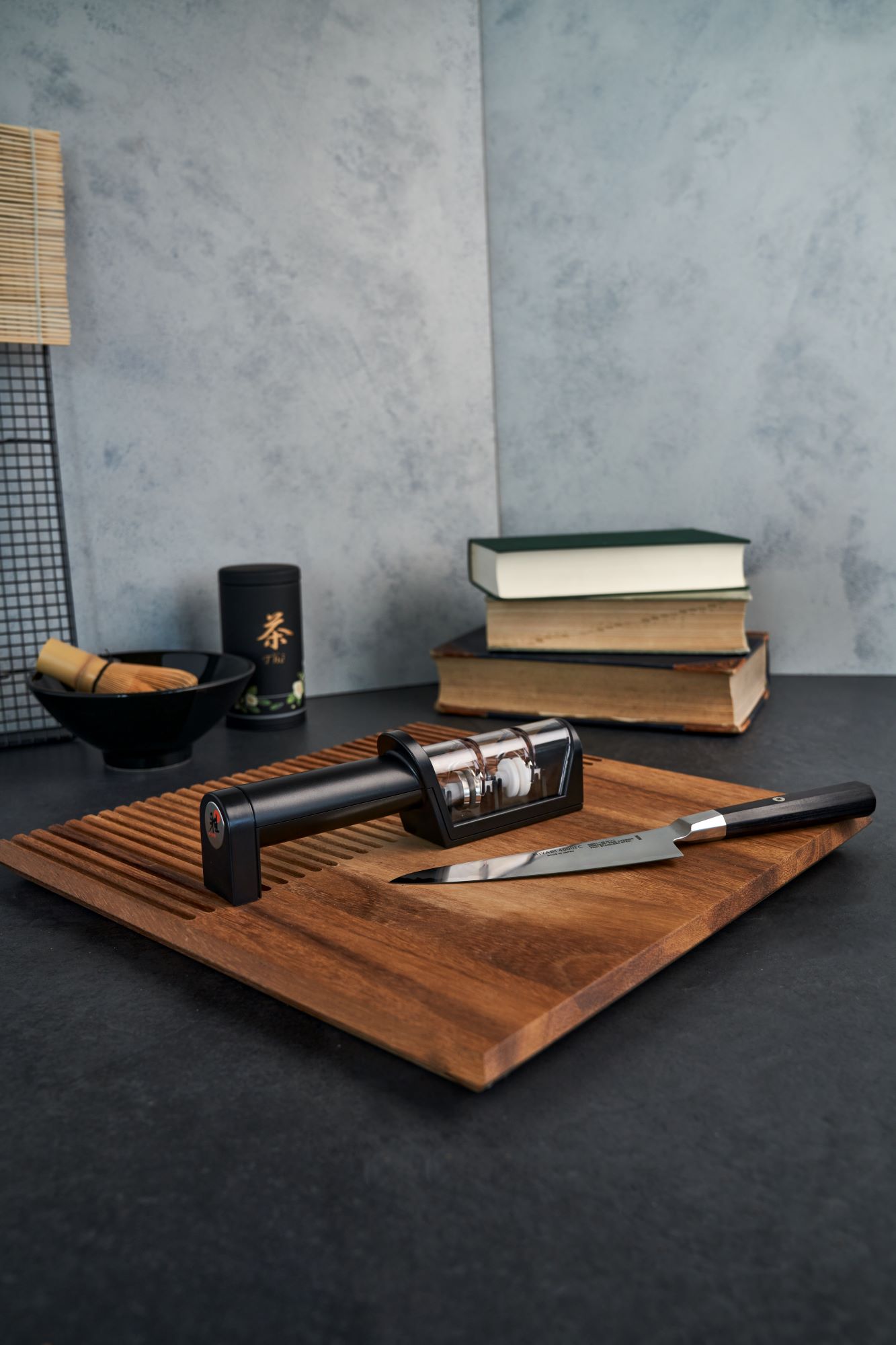 Acest dispozitiv poate fi folosit pentru ascutirea oricarui cutit Miyabi sau Zwilling cu lama dreapta.