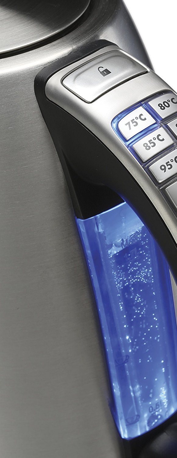 Daca iubesti ceaiul si cafeaua, atunci ai vrea ca apa sa atinga o temperatura potrivita pentru bautura ta fierbinte. Cu cele 6 temperaturi presetate cu butoane de selectie directa, fierbatorul permite infuzarea unui ceai verde sau alb intre 70°C si 80°C, sau a unui ceai negru sau rosu intre 90°C si 100°C.