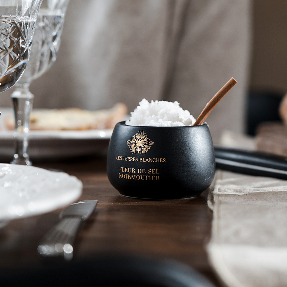 Prezentată în ambalaj negru, această creație este inspirată de istoria numelui Insulei Noirmoutier. Este cel mai recent produs din colecția „6 Sens”, o floare de sare rafinată, ideală pentru a sublinia delicatețea preparatelor culinare.