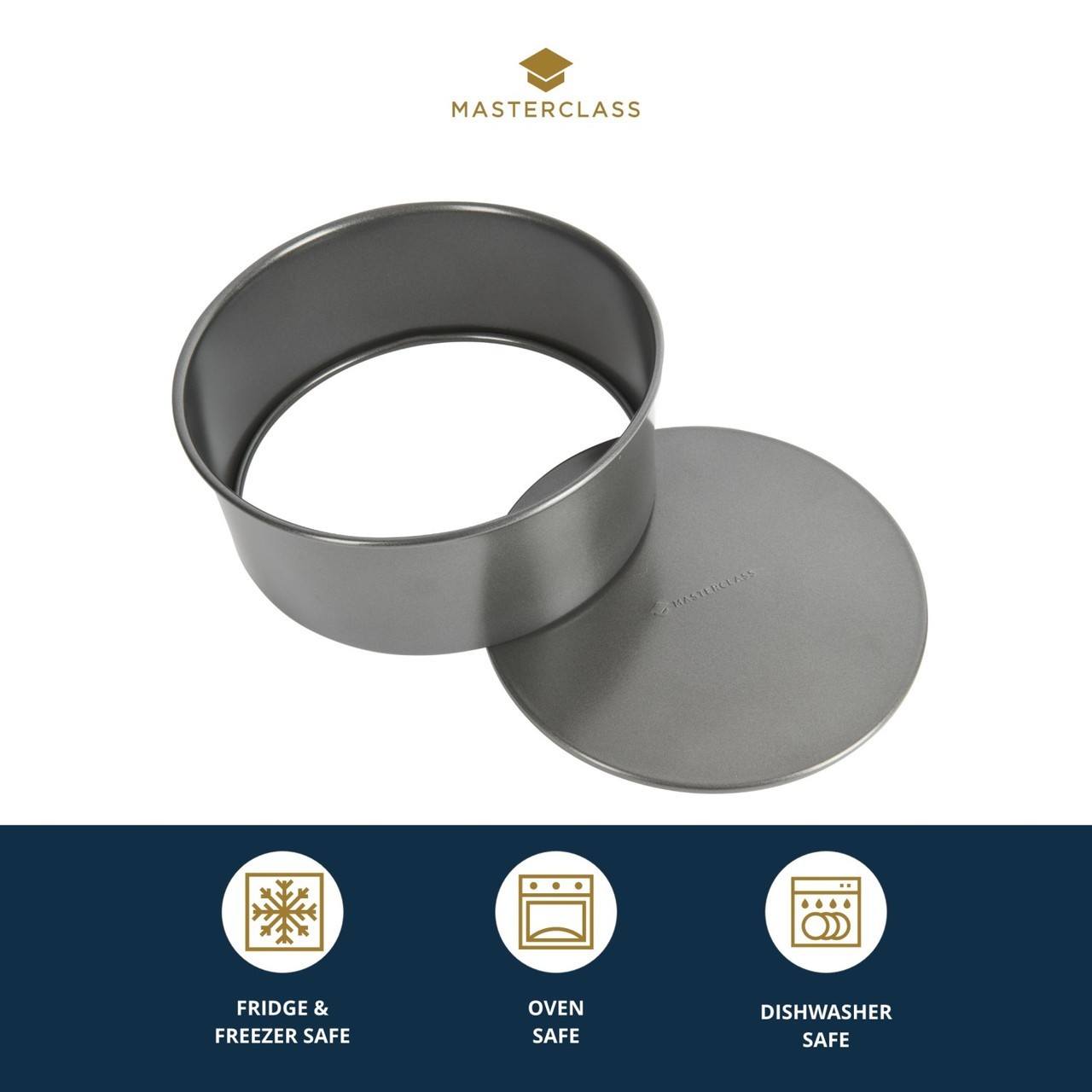 Forma pentru cuptor cu baza detasabila, marca MasterClass, diametru 23 cm, inaltime 9,5 cm, din otel cu grosimea de 1 mm.