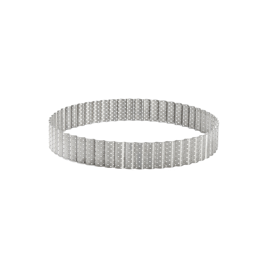 Inel rotund cu perforatii pentru preparare tarte si quiche, cu margine canelata, diametru 20 cm, fabricat din inox, marca de Buyer.