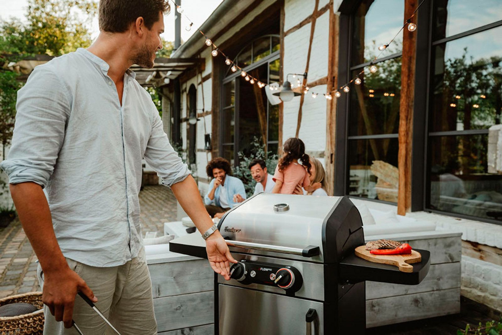 Cele doua elemente de incalzire sunt reglabile cu ajutorul comenzilor iluminate cu LED-uri si va permit sa gatiti tot ce doriti la gratar si sa preparati alimentele direct si indirect. Puteti gati orice va vine in minte - cu o suprafata de gratar de aproape 2.000 cm², aveti mai mult decat suficient spatiu pentru asta. Si pana aici ne-am referit la partea superioara, pentru ca in dulapul de baza veti gasi un spatiu generos de depozitare si un raft suplimentar. La exterior, elementele realizate din aluminiu turnat, cum ar fi componentele capacului si ale camerei de ardere, nu numai ca ii confera modelului eFLOW un aspect fascinant, dar ii asigura si stabilitate deosebita.