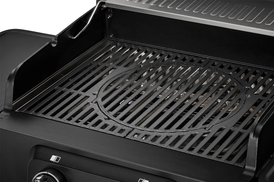 - SWITCH GRID: grila din fonta emailata, cu o gama larga de optiuni de preparare a gratarului. Cele doua zone de incalzire pentru frigere/prajire directa si indirecta, sunt reglabile individual.