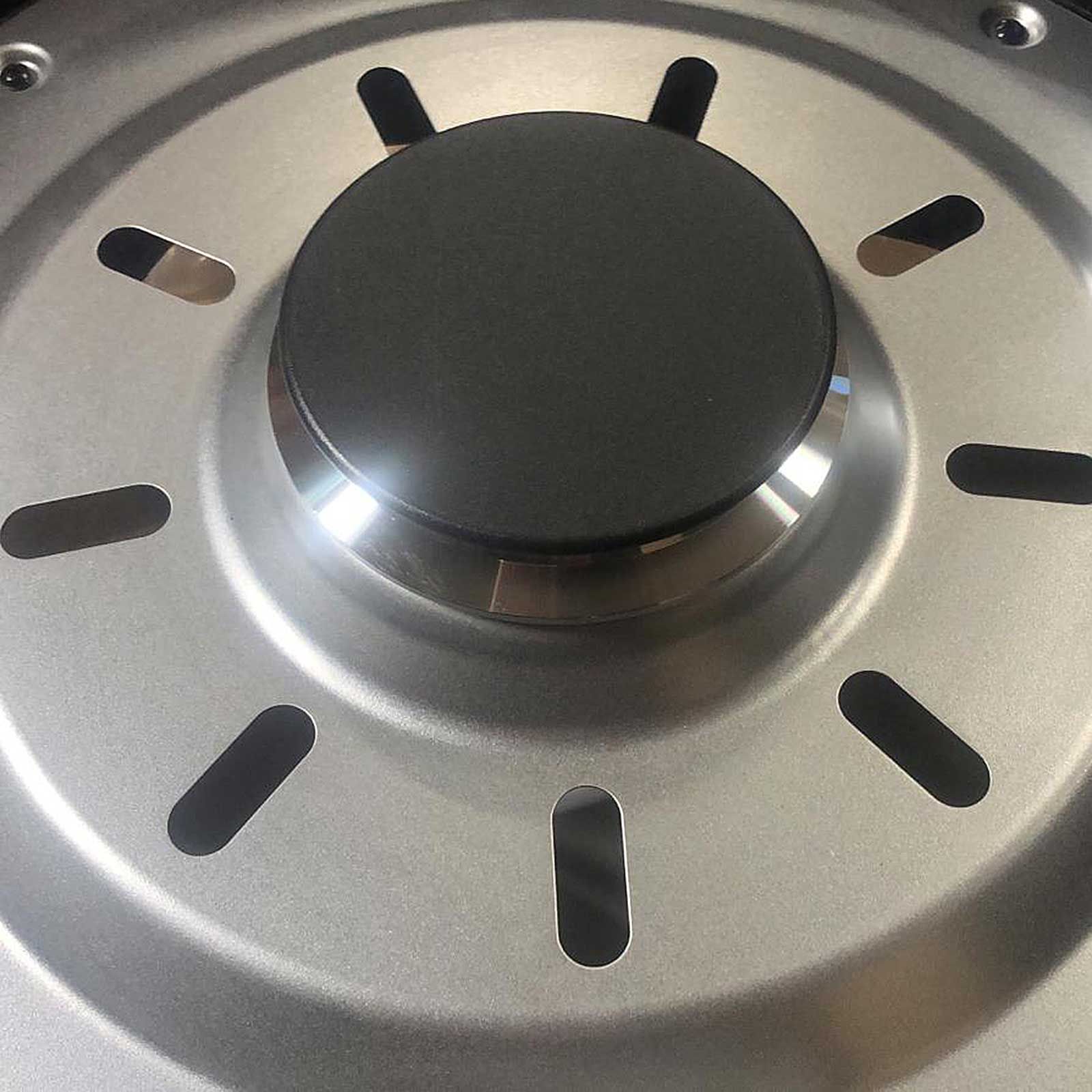 - Echipat cu suport pentru vase de gatit, grila de gratar si capac cu termometru integrat