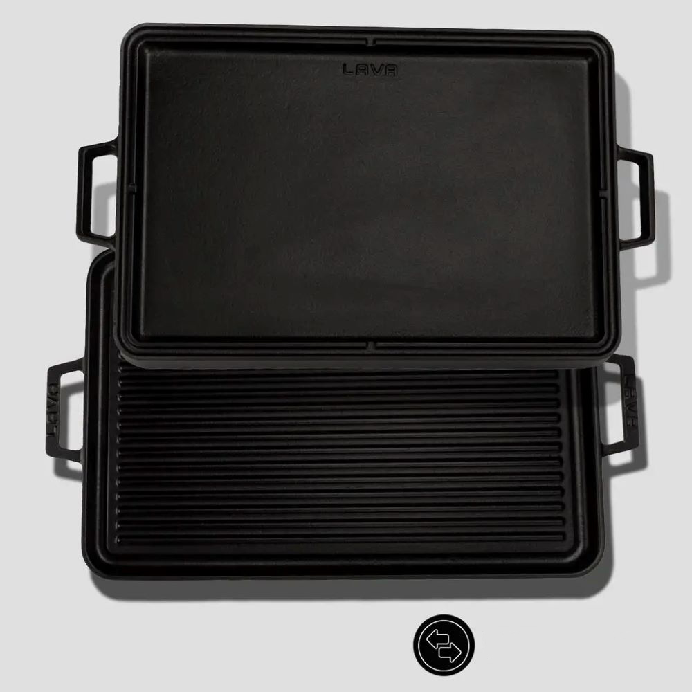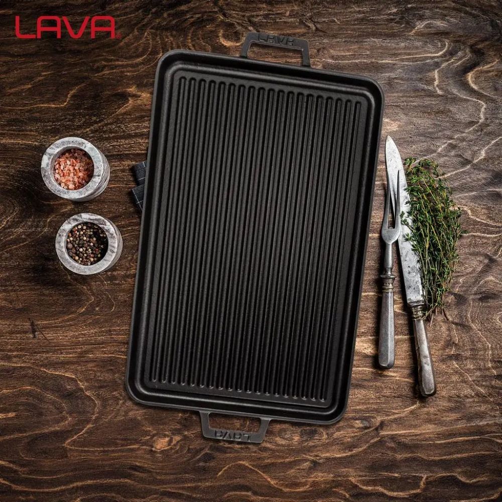 Plita grill cu doua fete, fabricata din fonta, dimensiune 43 x 28 cm, marca LAVA.