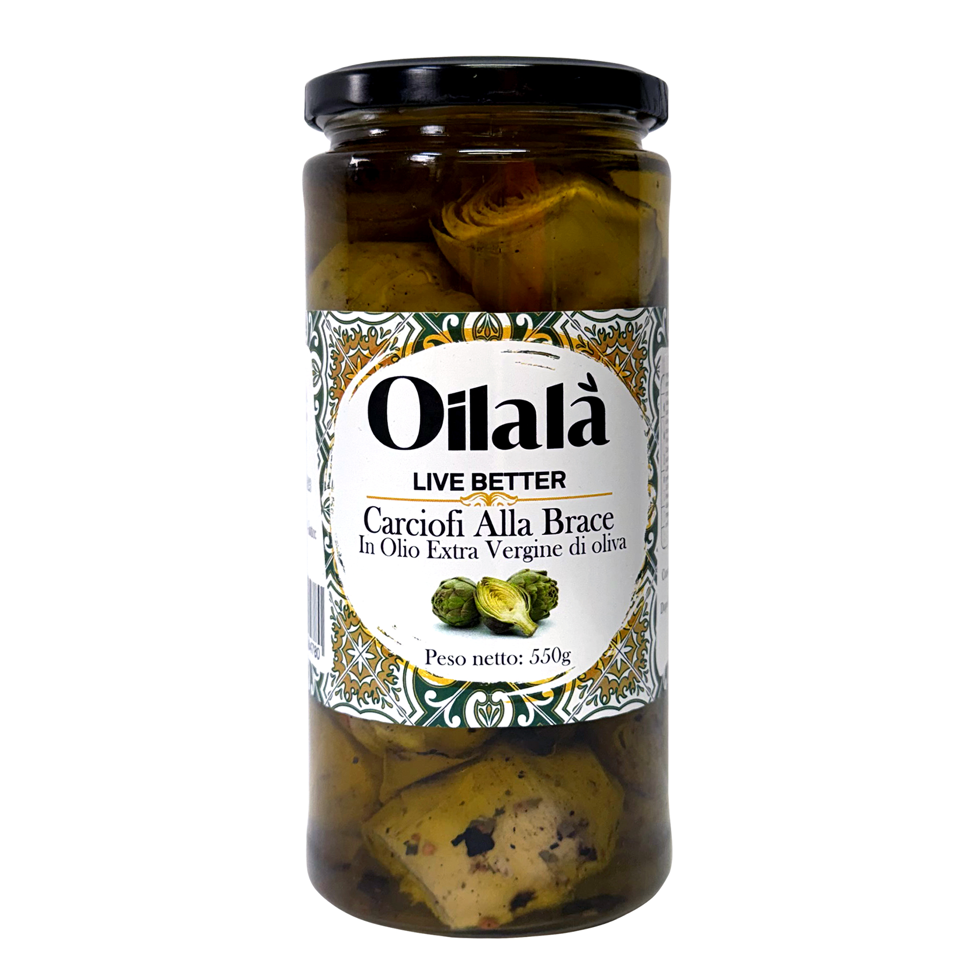 Denumire produs: Inimi de anghinare pe gratar in ulei de măsline extravirgin, 550 gr ℮