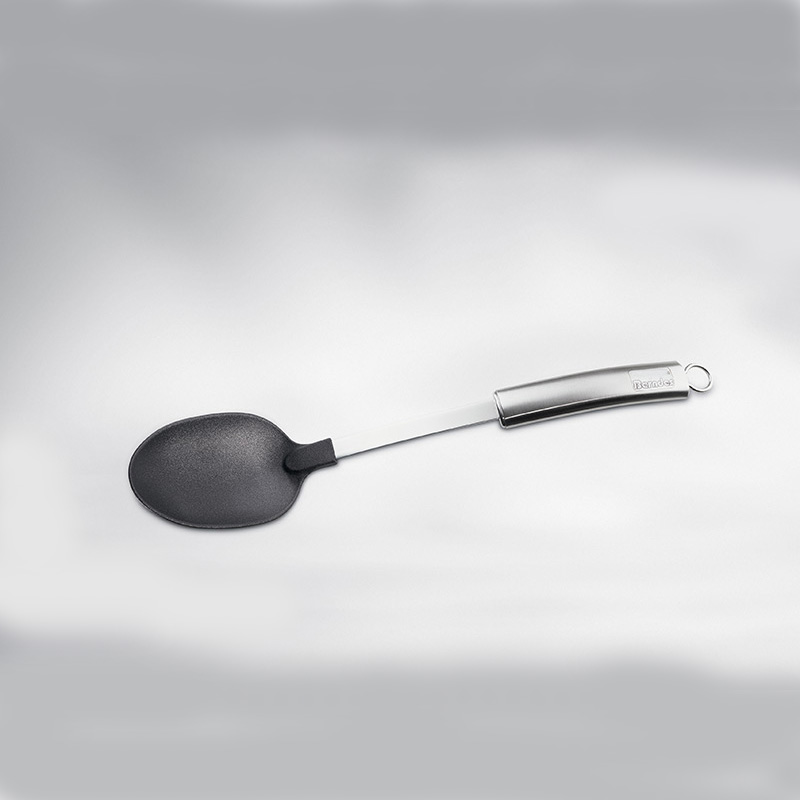 Lingura marca Berndes, din plastic termorezistent cu maner din inox. Se recomanda a se folosi la vase cu interior antiadeziv, la o temperatura de pana la 210°C (+410F). Nu distruge stratul de teflon la utilizare. A nu se lasa in contact direct cu flacara. Se poate spala la masina de spalat vase.
