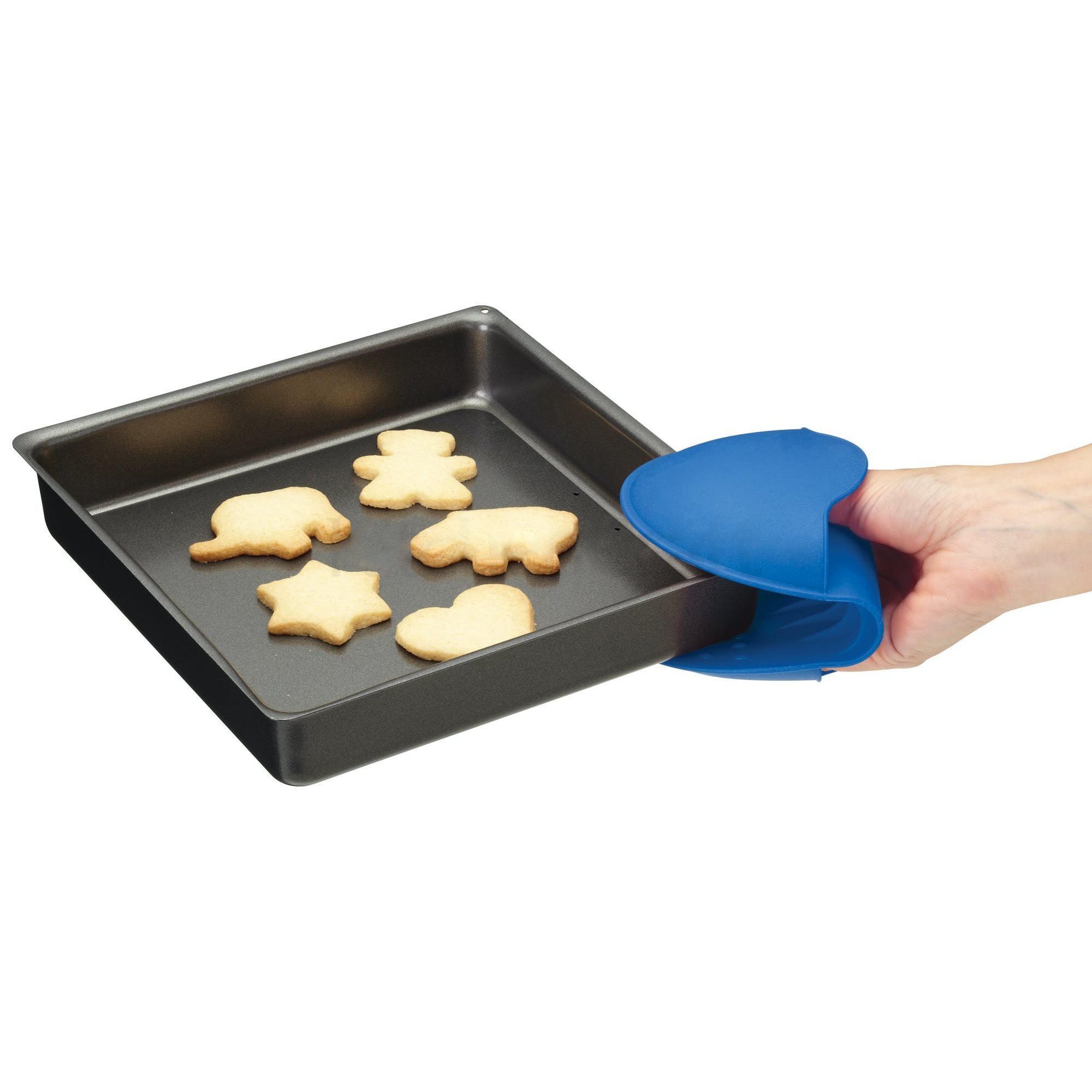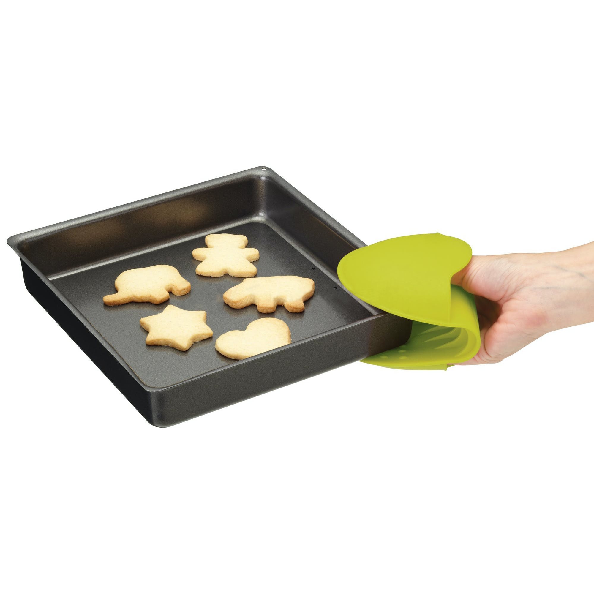 Fabricata dintr-un silicon flexibil, care nu aluneca, rezistent la temperaturi ridicate de pana la 260°C, manusa de protectie are dimensiunile de 9 x 10,5 cm si poate fi atasata de cuptor, de cuptorul cu microunde sau de frigider datorita magnetului cu care este prevazuta.