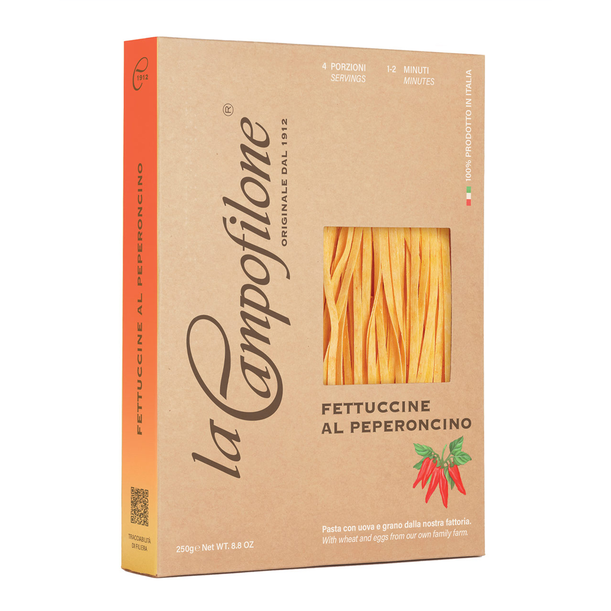 Pentru a da culoare, energie „picanta” si o aroma irezistibila preparatelor tale, incearca Fettuccine cu ardei iute „La Campofilone”! O adevarata sarbatoare pentru ochi si pentru gust! Perfect cu hamsii, ardei iute verde si usturoi.