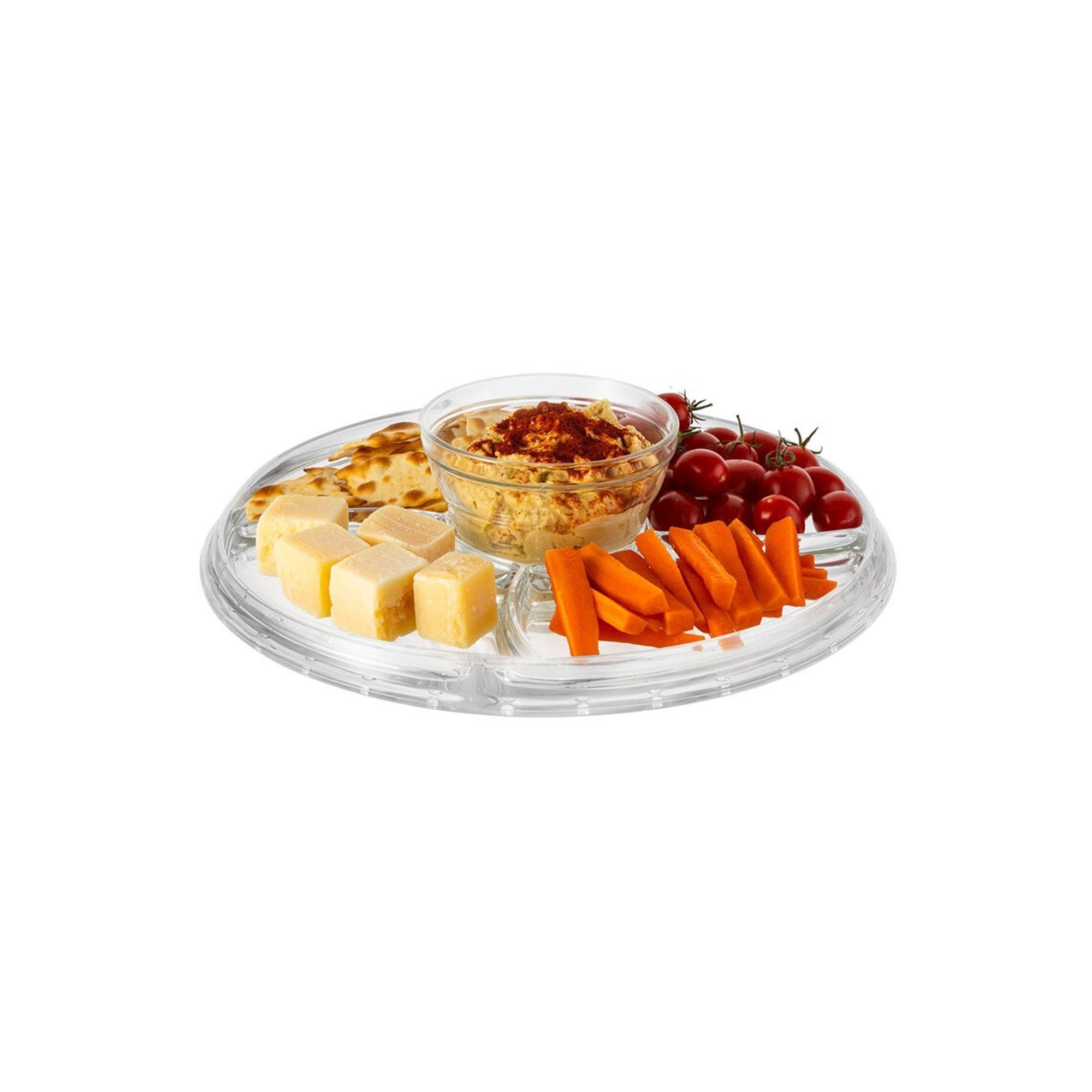 Platoul si capacul tip dom sunt fabricate in Italia, din sticla presata de calitate extra clara.