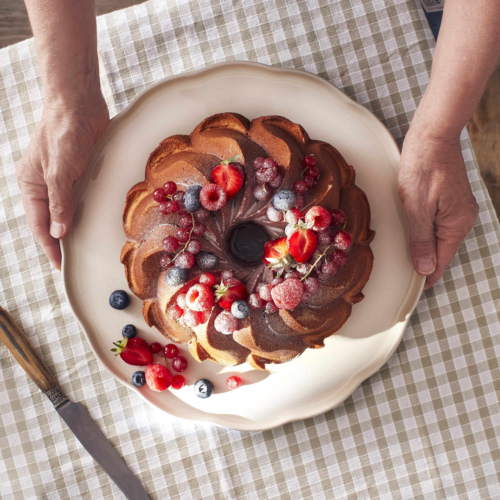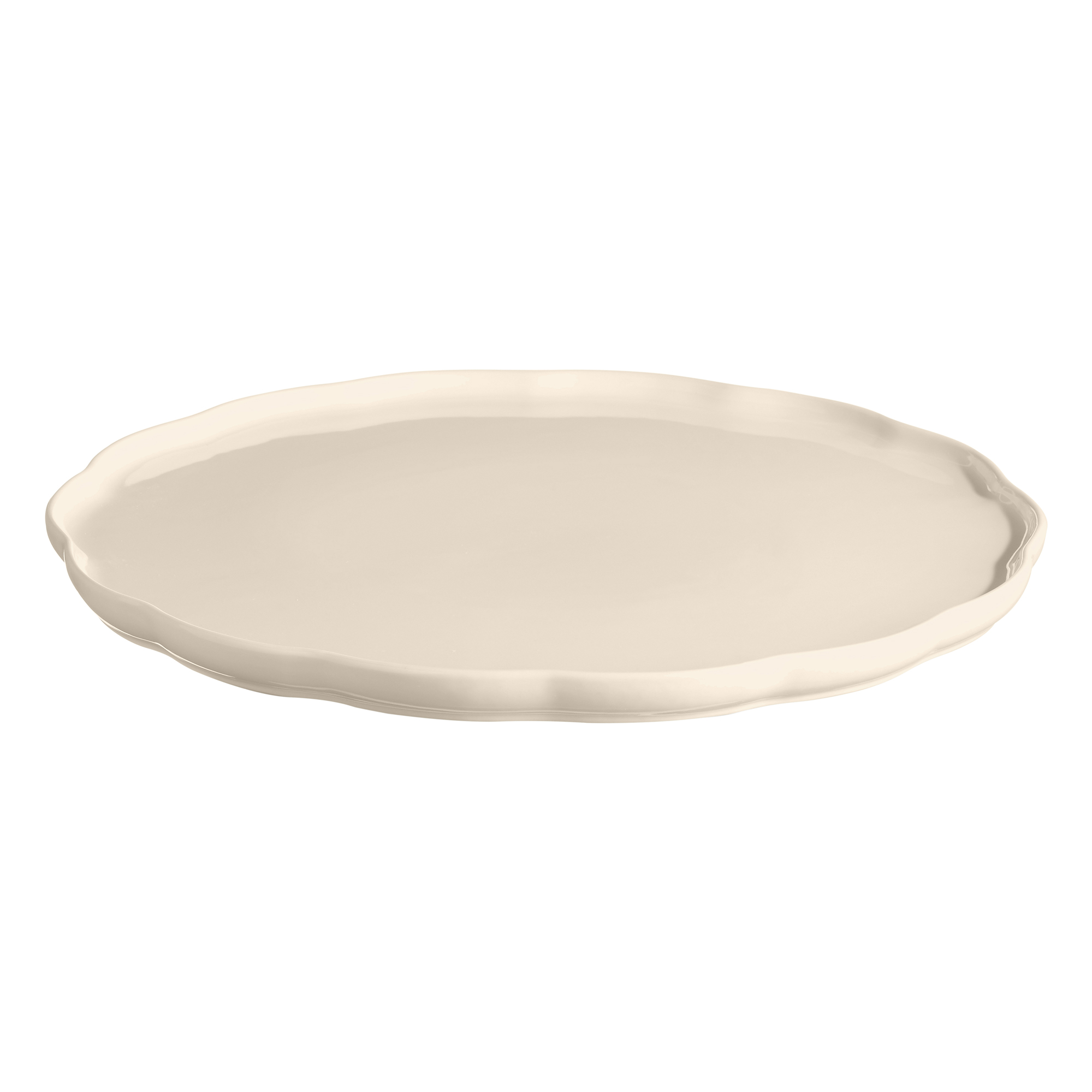 Fabricat manual din ceramica, platoul rotund de servire este cu adevarat versatil. In cuptor, distribuie caldura usor si uniform, fiind ideal pentru coacerea fursecurilor, babka, produselor de patiserie, strudelelor, etc.