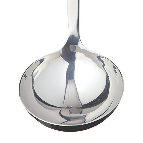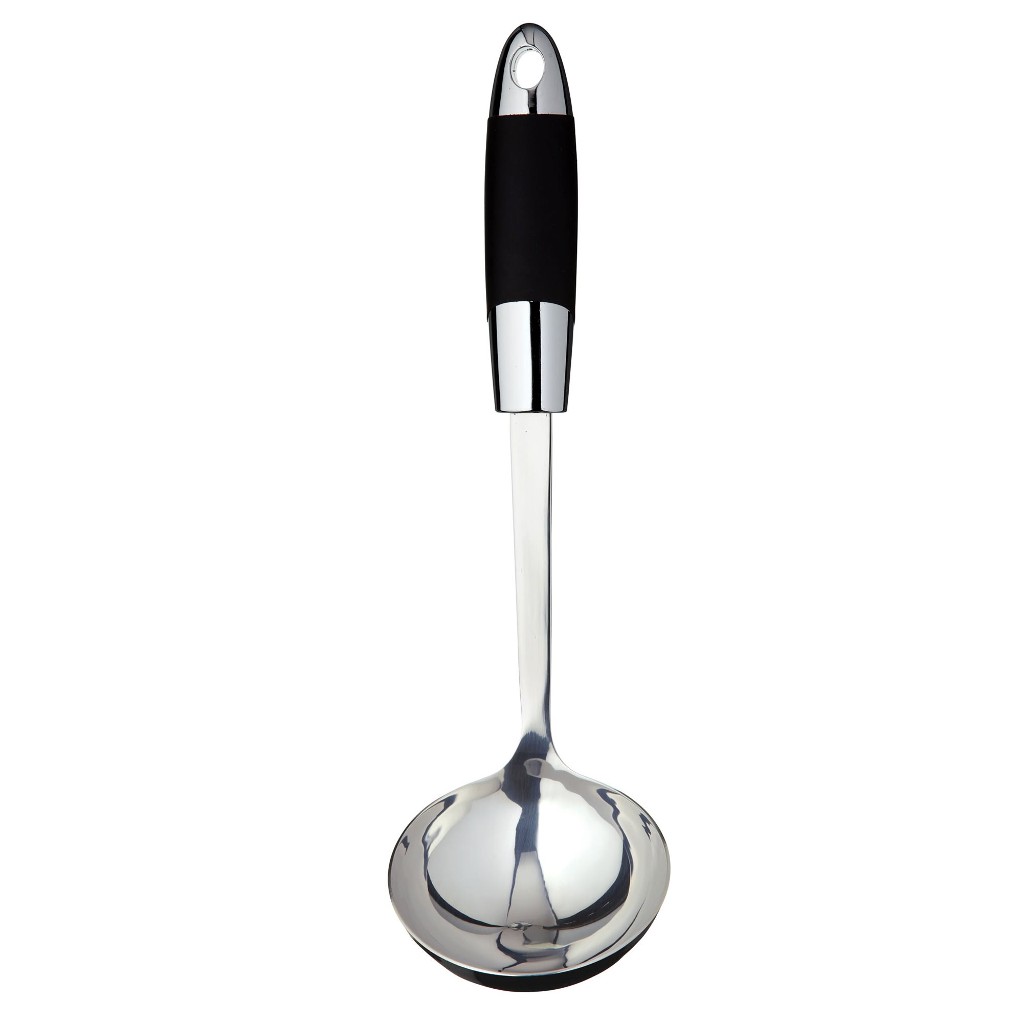 Cu un finisaj lustruit, usor de manuit, datorita manerului prevazut cu suprafata de prindere moale si cu proprietati ce nu permit alunecarea, polonicul din inox de la MasterClass prezinta pe maner un inel pentru agatat, facandu-l usor de depozitat.