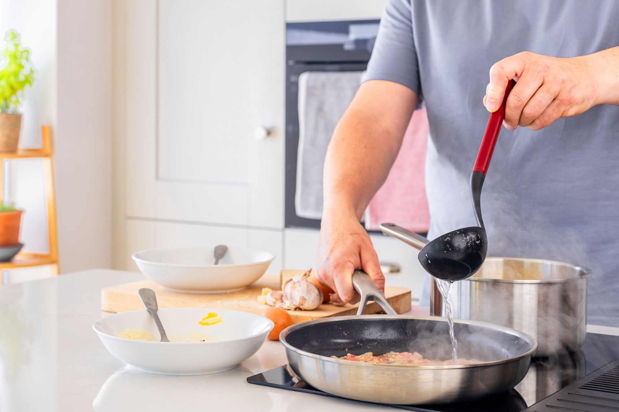 Polonic marca KitchenAid, fabricat din plastic, compatibil cu toate tipurile de vase, inclusiv cu cele cu strat antiaderent.