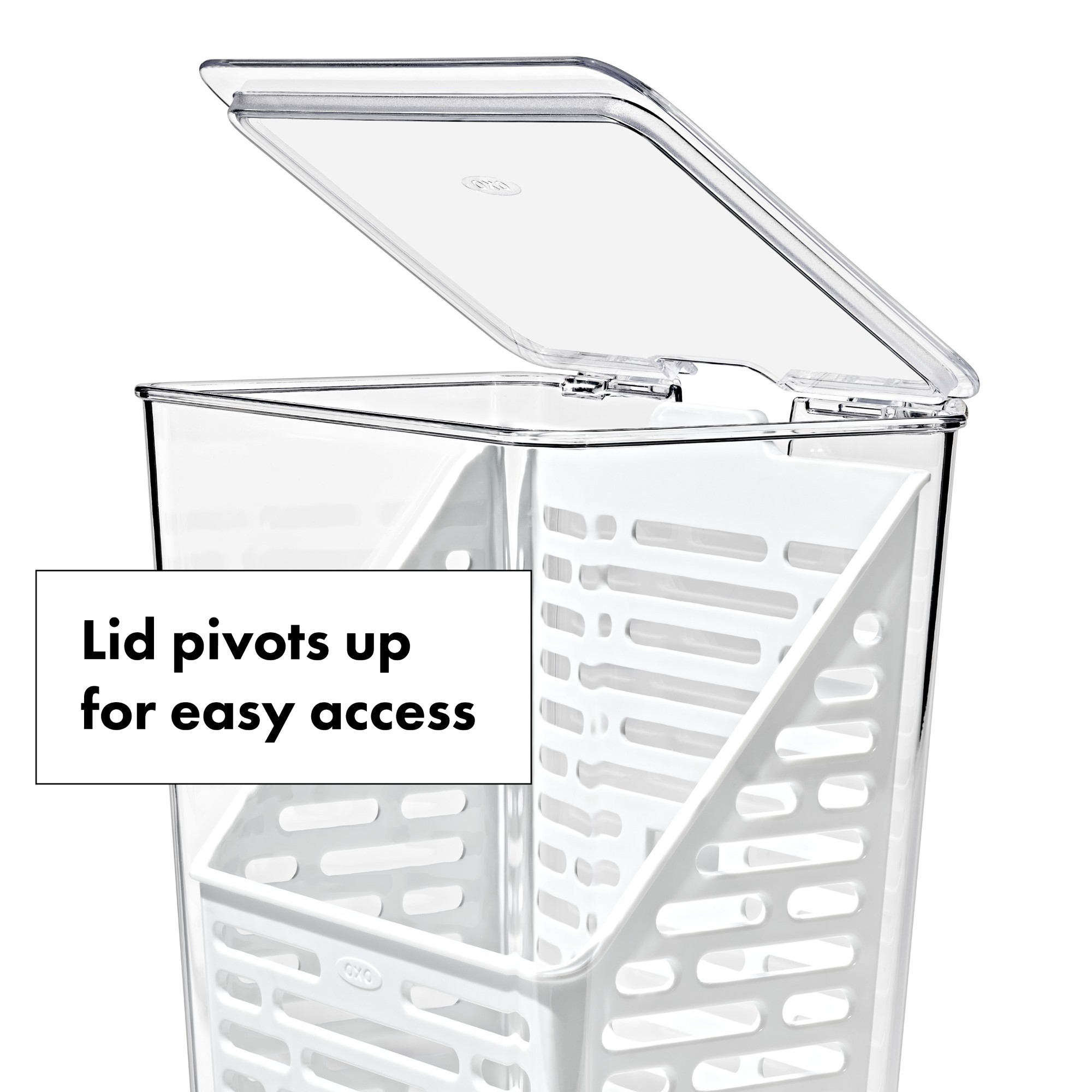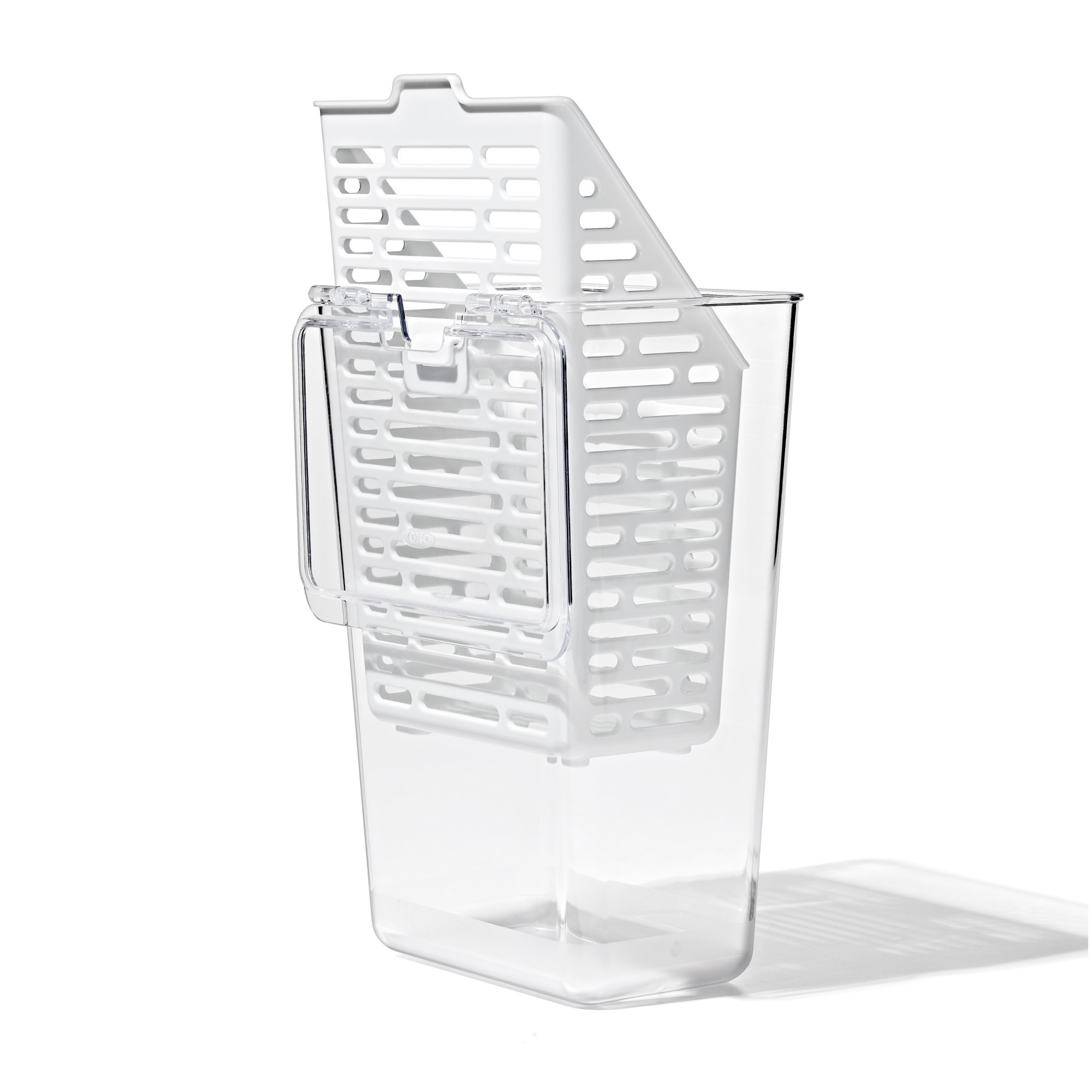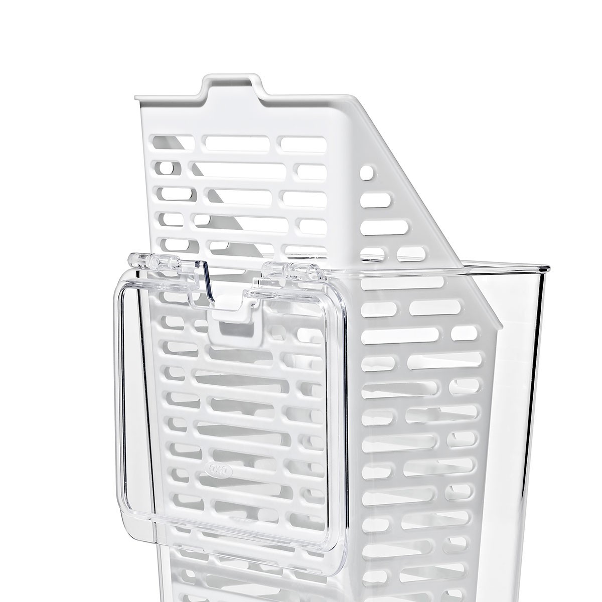 Cand sunteti gata sa utilizati ierburile aromatice, capacul cu balamale se deschide usor, iar cosul detasabil este conceput pentru a fi agatat si suspendat. Designul ingust al recipientului se potriveste perfect pe rafturile sau usile frigiderului.