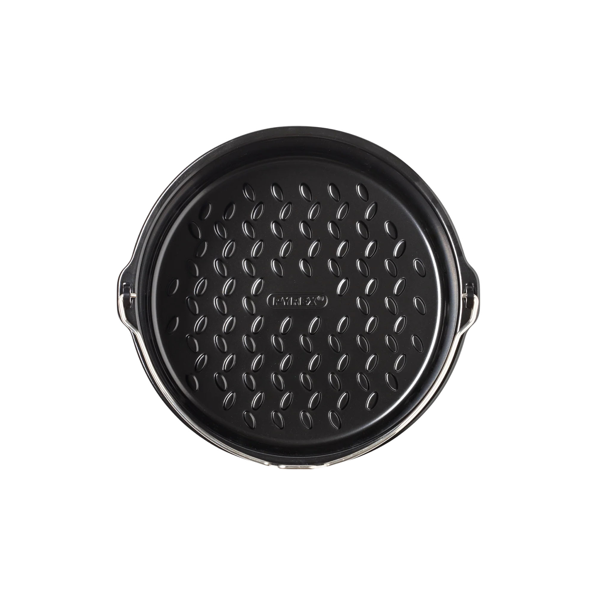 Recipient rotund, potrivit pentru friteuza cu aer cald, cu diametrul exterior 19 cm, fabricat din otel, cu acoperire antiaderenta, marca Pyrex.