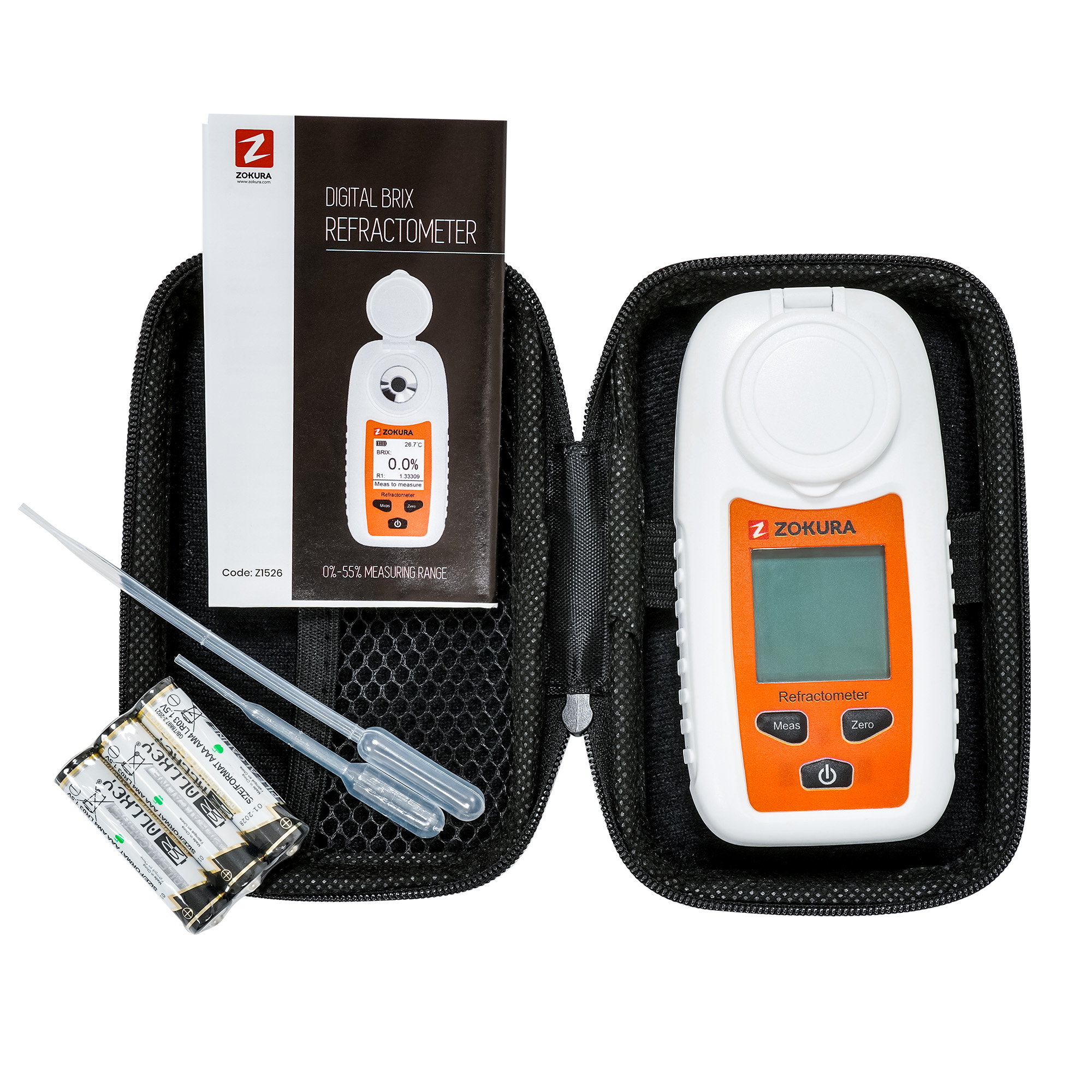 Refractometru ATC (Compensare Automata a Temperaturii), usor si portabil pentru masurarea continutului de zahar in solutii cum ar fi siropul de zahar, sucuri de fructe, bauturi racoritoare si bauturi alcoolice, etc.